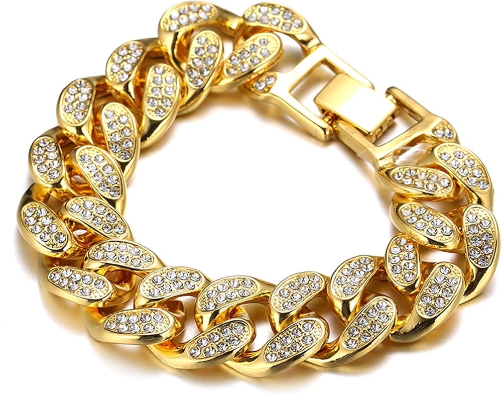 ✦HEAVY MADE,MORE DURABLE✦ Iced Out 20mm Width Solid Gold Plated Strong Chain Made of German Standard Quality Metal,Thick and Sturdy Appearance.Heavy feeling Makes it Looks and Feels Expensive.Every Thing you Want in a Chain Maybe Like This.