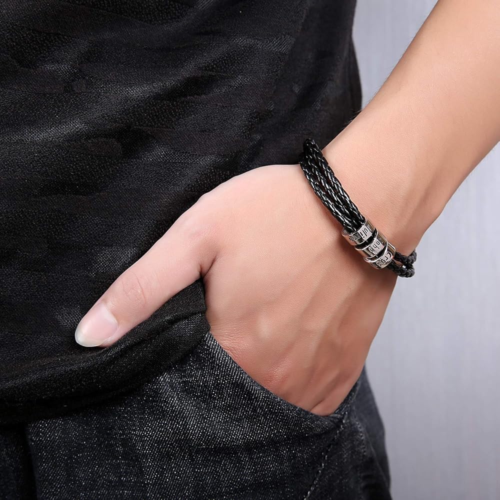 Great Choice: Leather bracelet measures 8.2 inches long.A perfect gift for husband, dad, brother, boyfriend, best friends, groomsman, loved ones or a special treat for yourself. And all occasions: Father's Day, Valentines, Wedding, Anniversary, Birthday, Christmas.