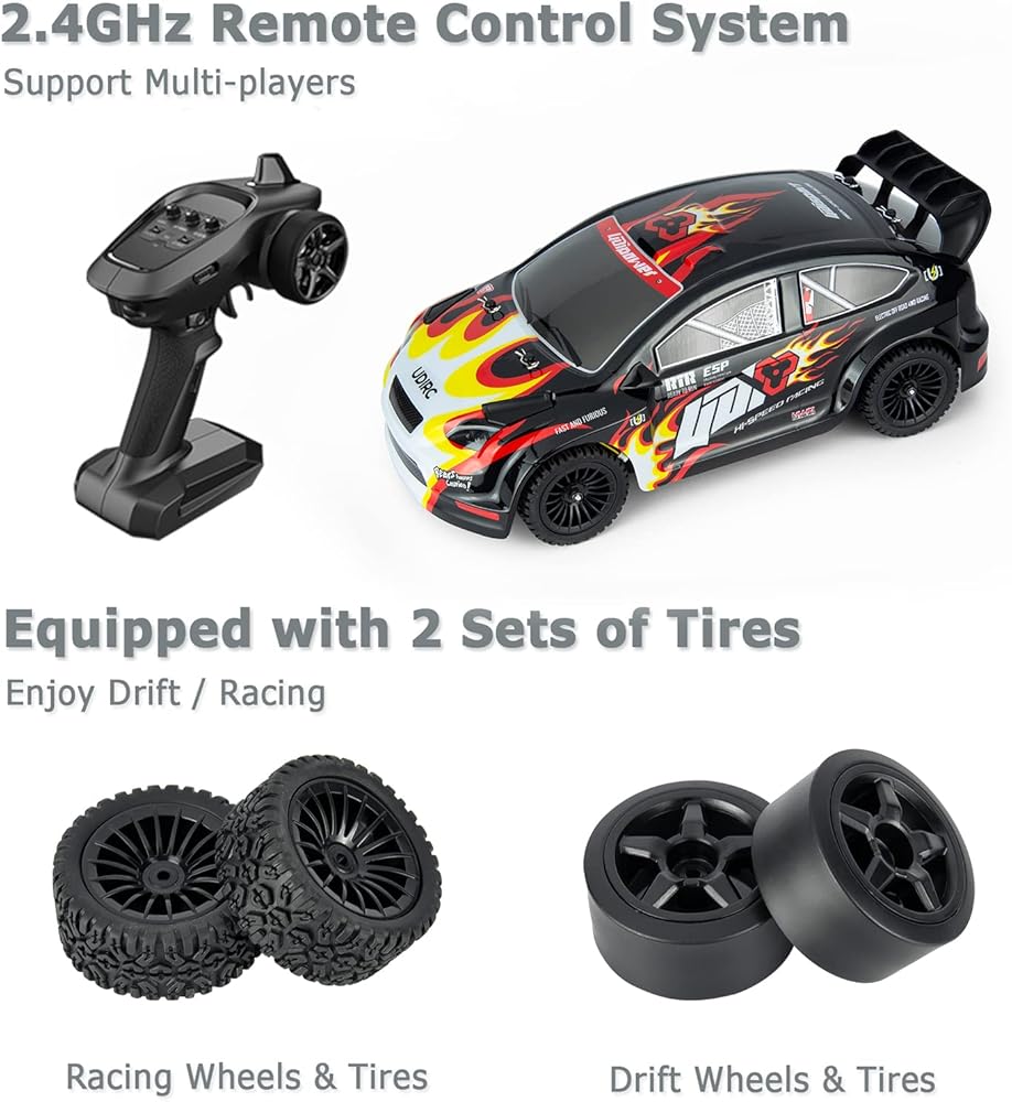 【40KM/H High Speed】This high speed remote control car equipped with powerful motors,it can reach a high speed of 40KM/H. With 2.4Ghz remote control system, allows you to play a match with your friends without any interference,this car is a ideal car toys for kids and adults.