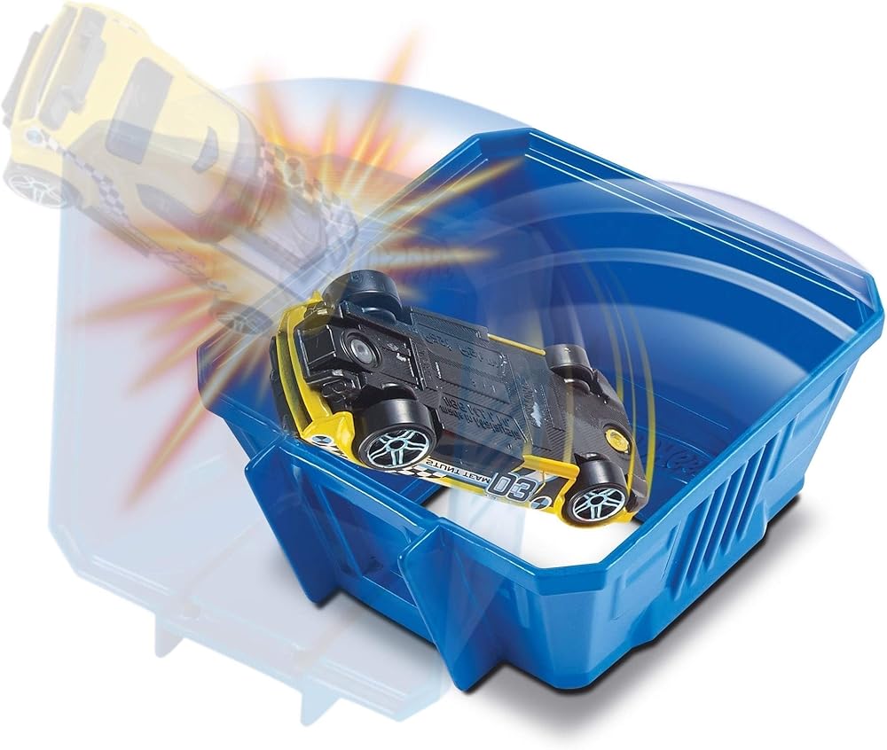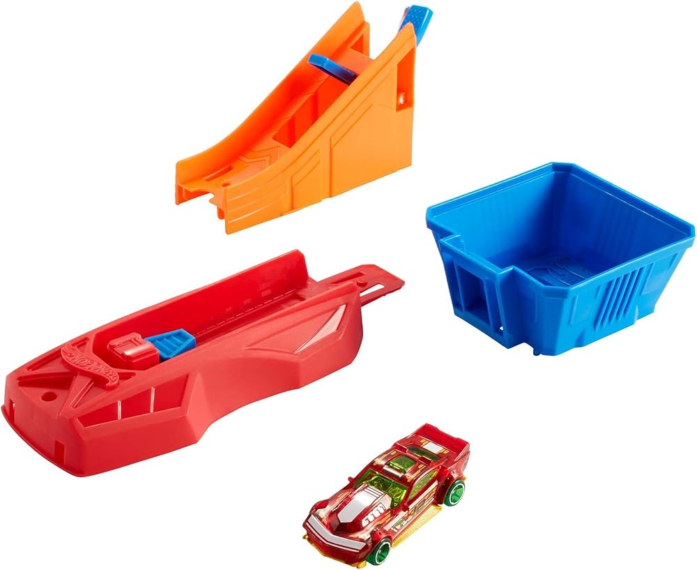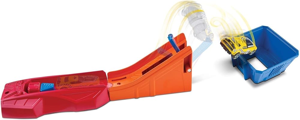 تلعب Hot Wheels السريعة والممتعة والكلاسيكية بالسيارات الشهيرة والمسار البرتقالي الرائع وقاذفة.