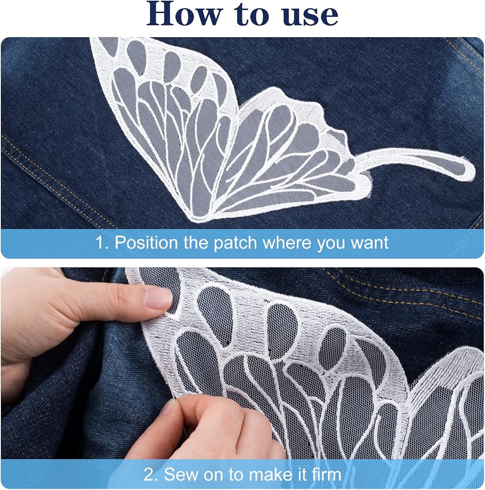 【سهلة الاستخدام】: رقع الدانتيل المطرزة على شكل فراشة سهلة للخياطة اليدوية العامة، يمكنك خياطتها في أي مكان تريده، وإضافة لمسة جميلة إلى مشاريعك الحرفية