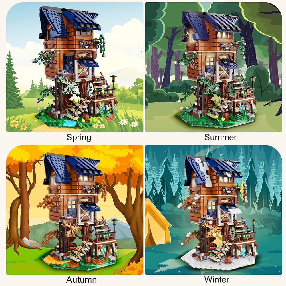 فاتوس لعبة بيت الشجرة ستيم، 1155 قطعة من مجموعة البناء الابداعية للاطفال مع ضوء LED | 4 مواسم في 1 منزل شجرة بناء منزل غابة ل6 7 8 9 10+ هدية عيد الميلاد للبنات والاولاد