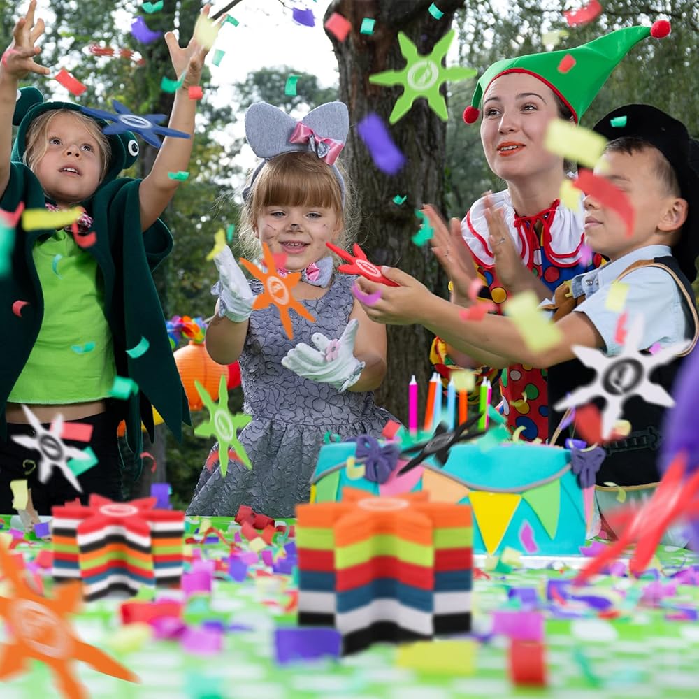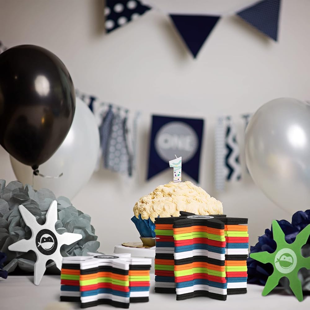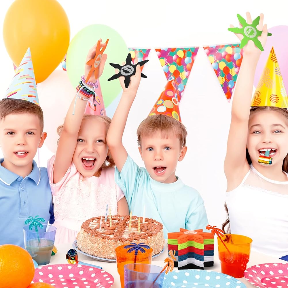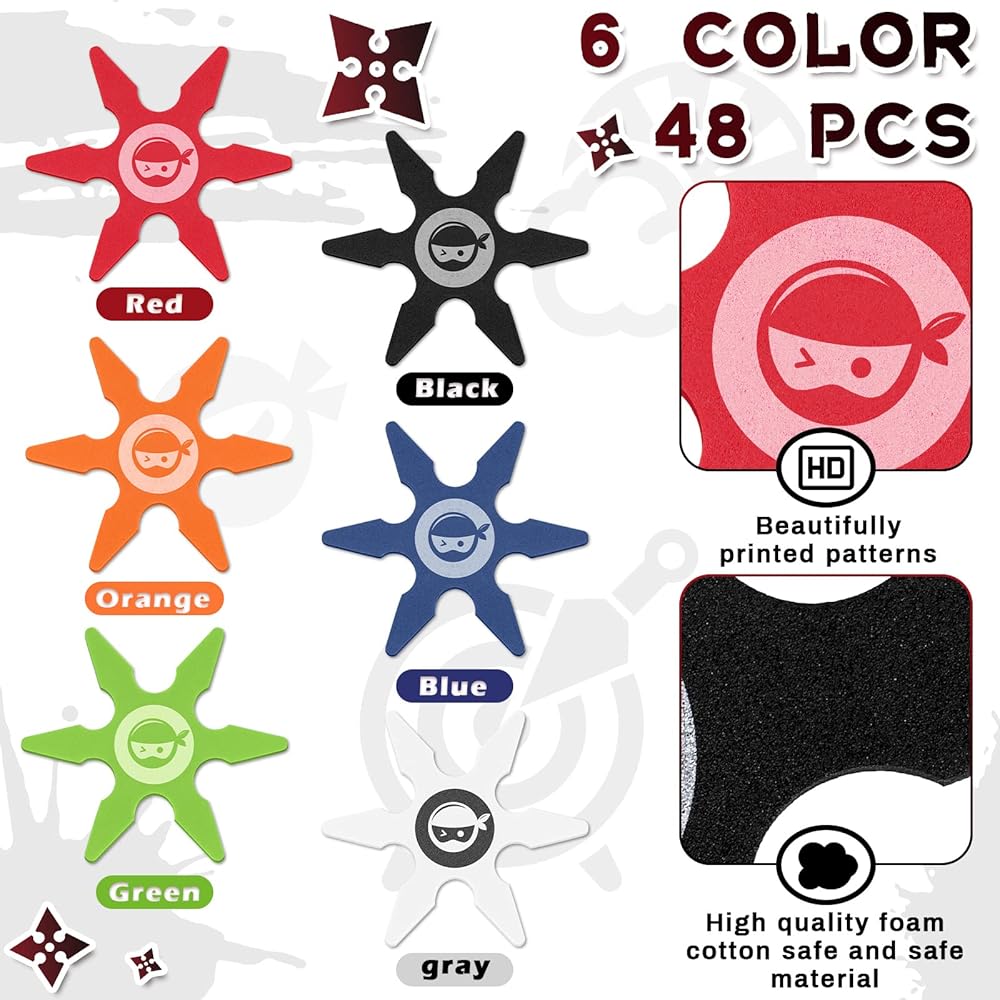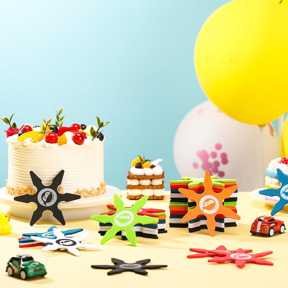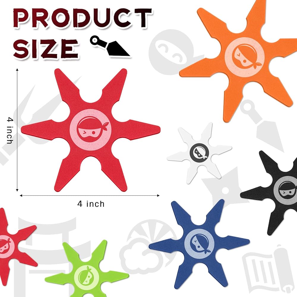 هدايا كافية لحفلات النينجا: ستحصل على 24 قطعة من نجوم رغوة النينجا بأربعة ألوان مختلفة، وهي الأحمر والأزرق والأسود والأخضر، ألعاب النينجا كافية حتى تتمكن من مشاركتها مع الآخرين للاستمتاع معًا أثناء الحفلة