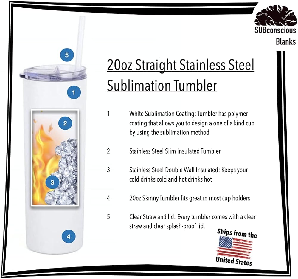 📦 You package includes: Ten 20 oz skinny tumblers, ten white straw, ten splash-proof lids and 10 pieces of shrink wrap. Each tumbler is packaged individually with its own sleeve of bubble wrap and box (as seen in photos). This allows the tumbler to stay safe while in the shipping process and allows you to give as a gift or ship once personalization are completed.