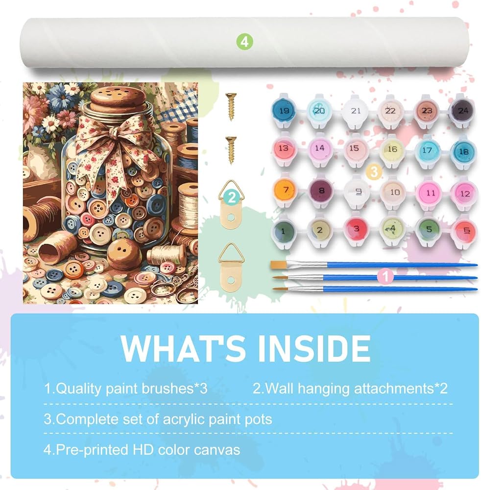 أرسم جرة الأزرار حسب أرقام الأرقام للبالغين - الطلاء الأسطوري بأرقام للمبتدئين ، الألوان المائية الأكريليك بواسطة مجموعات الأرقام ، ولوحة زهور الزيت DIY على قماش للديكور المنزلي والهدايا 16x20 بوصة
