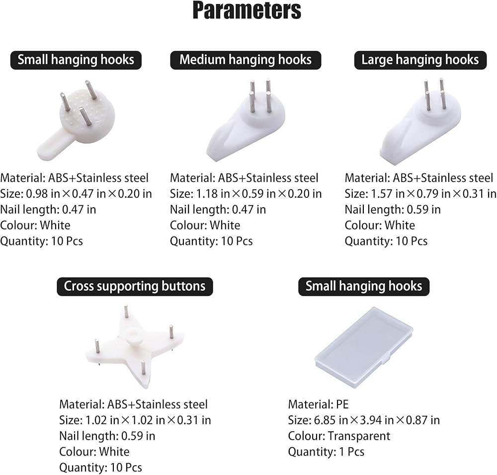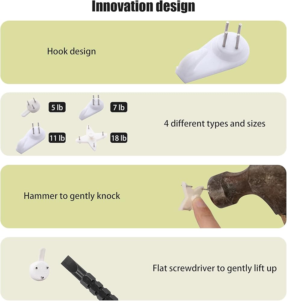 【تصميم مبتكر】تعتمد مجموعة شماعات الصور غير المرئية شودولي على تصميم الخطاف والأزرار، بما في ذلك 4 أنواع وأحجام مختلفة، والتي يمكن أن تلبي احتياجات الأشياء المعلقة المختلفة؛ 10 قطع من خطافات التعليق الصغيرة (5 باوند)، 10 قطع من خطافات التعليق المتوسطة (7 باوند)، 10 قطع من خطافات التعليق الكبيرة (11 باوند)، 10 قطع من أزرار الدعم المتقاطعة (18 باوند)؛ إنها مريحة للغاية لكبار السن والنساء لكبار السن والنساء. أثناء التركيب، استخدمي مطرقة لضرب الظفر بلطف؛ أثناء الفك، استخدمي مفك براغي مسطح لرفعه بلطف.