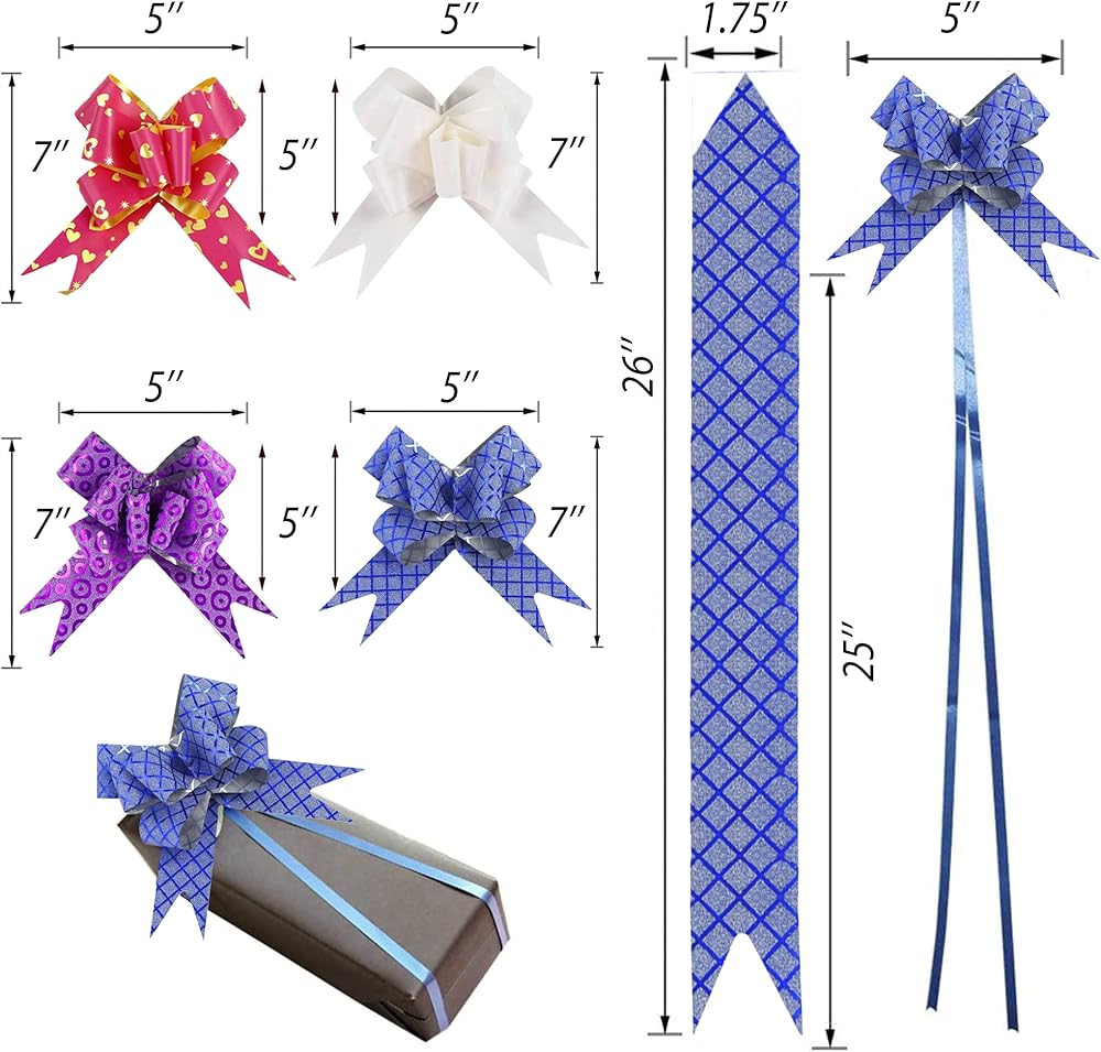 مقاسات مختلفة 5 بوصة، 3 بوصة، 2.5 بوصة، 1 بوصة لتغليف الهدايا.