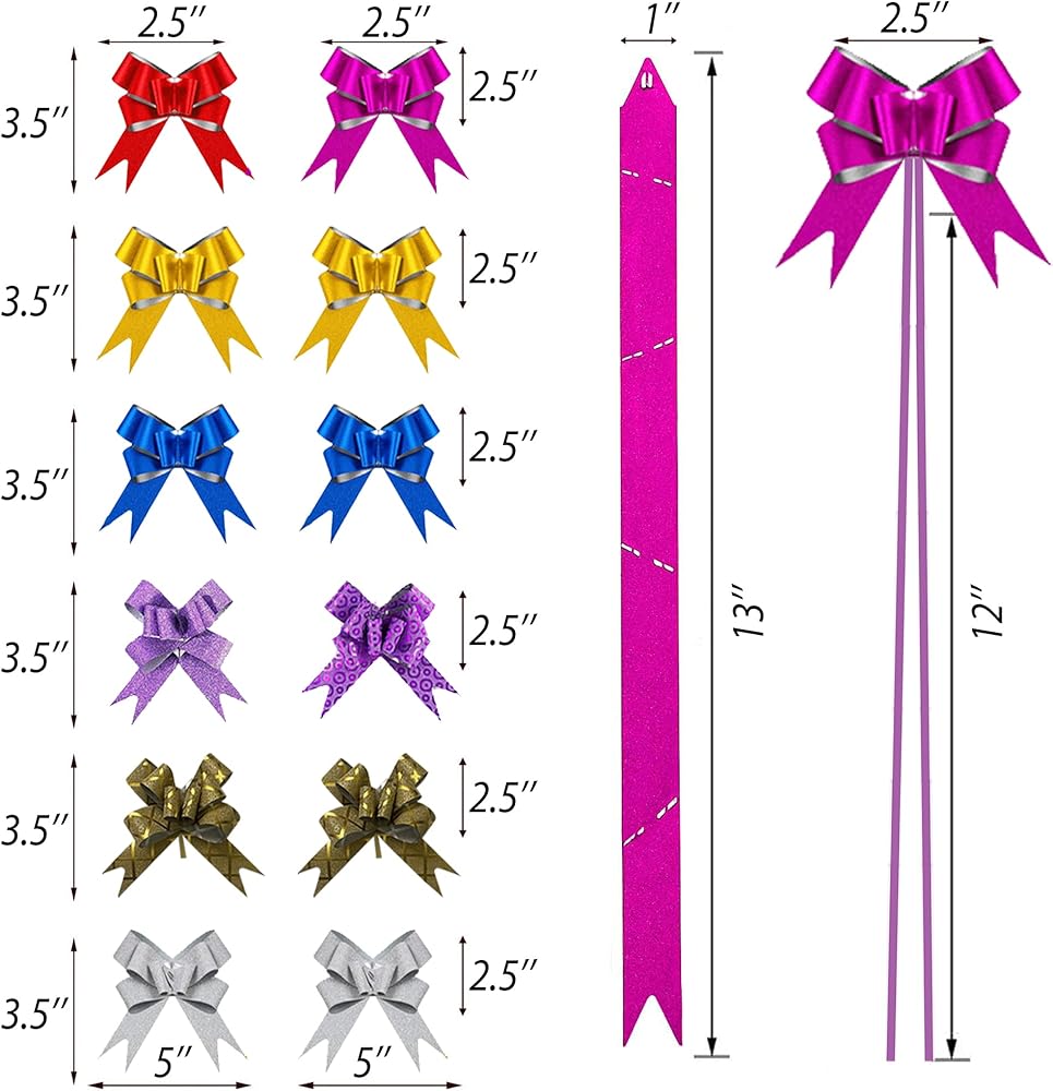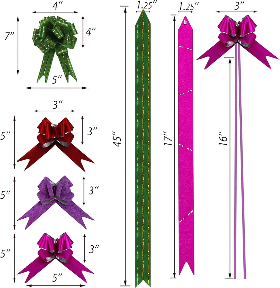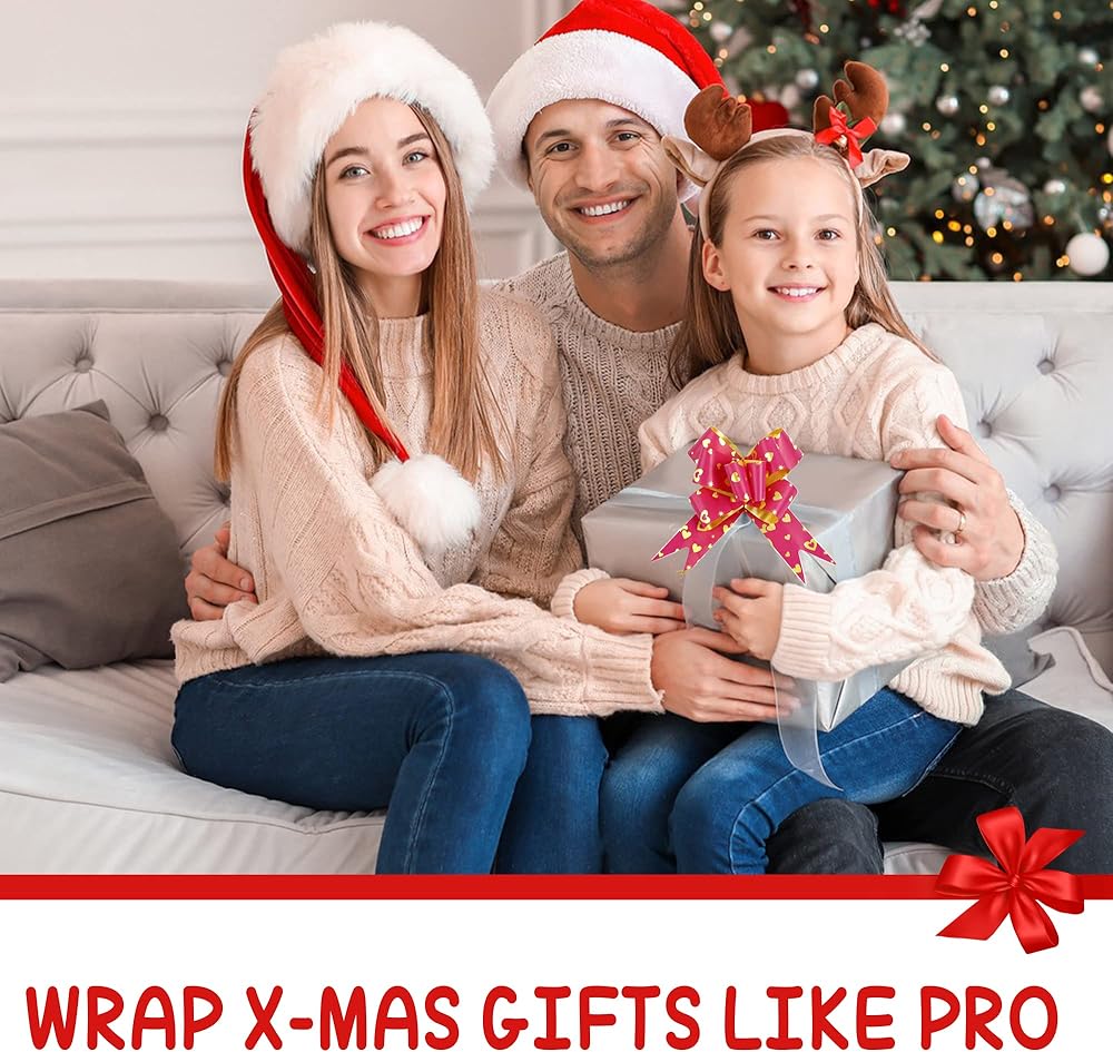 فيونكات سحب لعيد الميلاد - مجموعة كبيرة من 2.54 سم إلى 12.7 سم لتغليف الهدايا مع شريط لتزيين عيد الميلاد - 30 قطعة