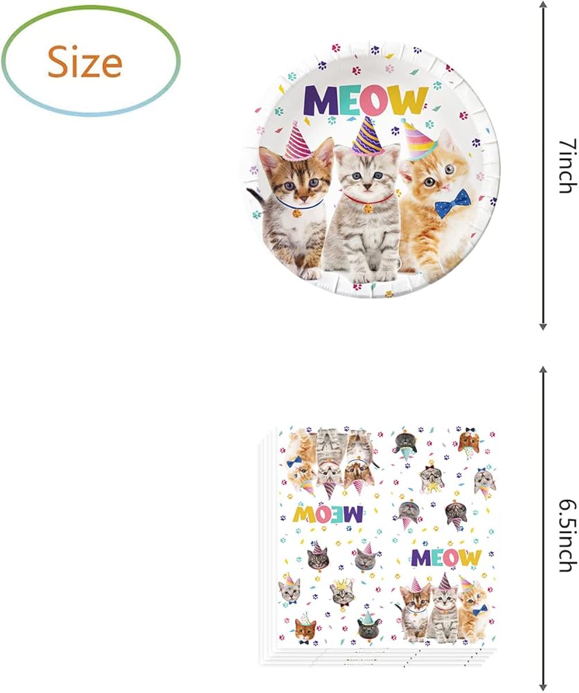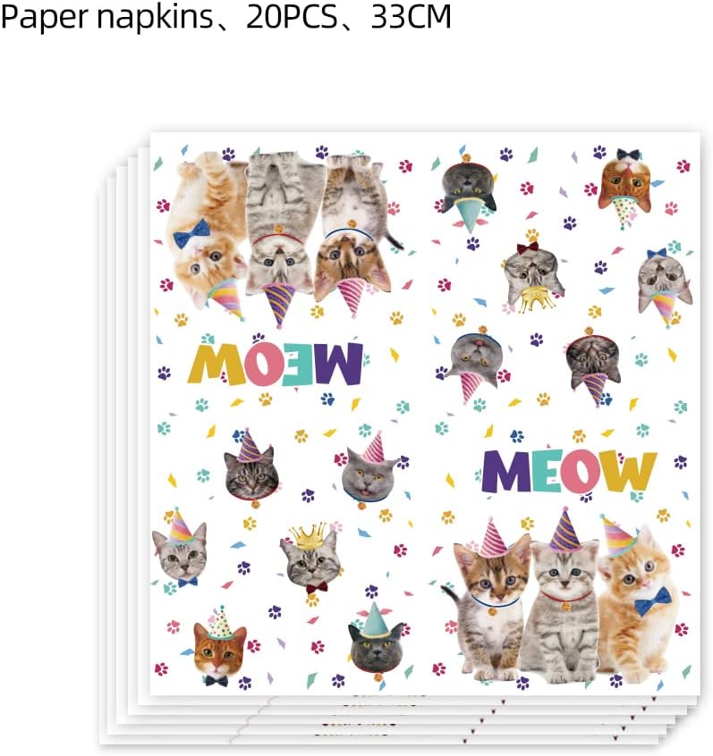 Cat Party Supplies Kitten Birthday Decorations - 20 Plates & Napkins