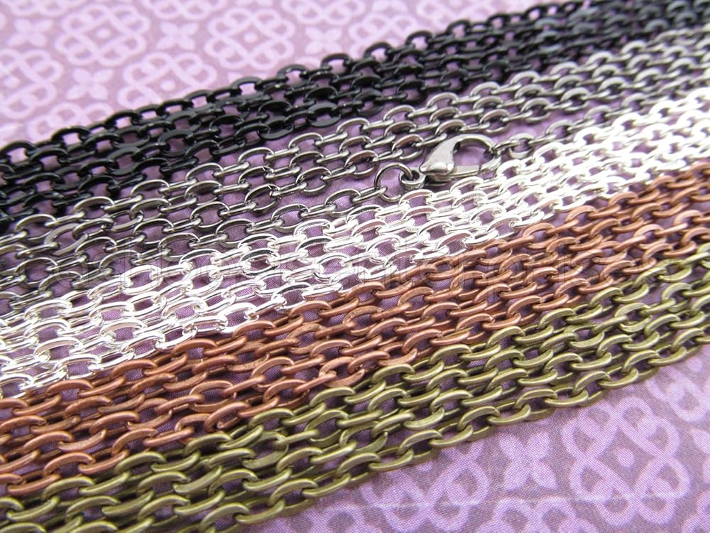 Receive 4 of each color: Antique bronze, Antique copper, shiny silver, gunmetal, and dark black - 20 chains total