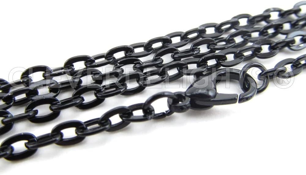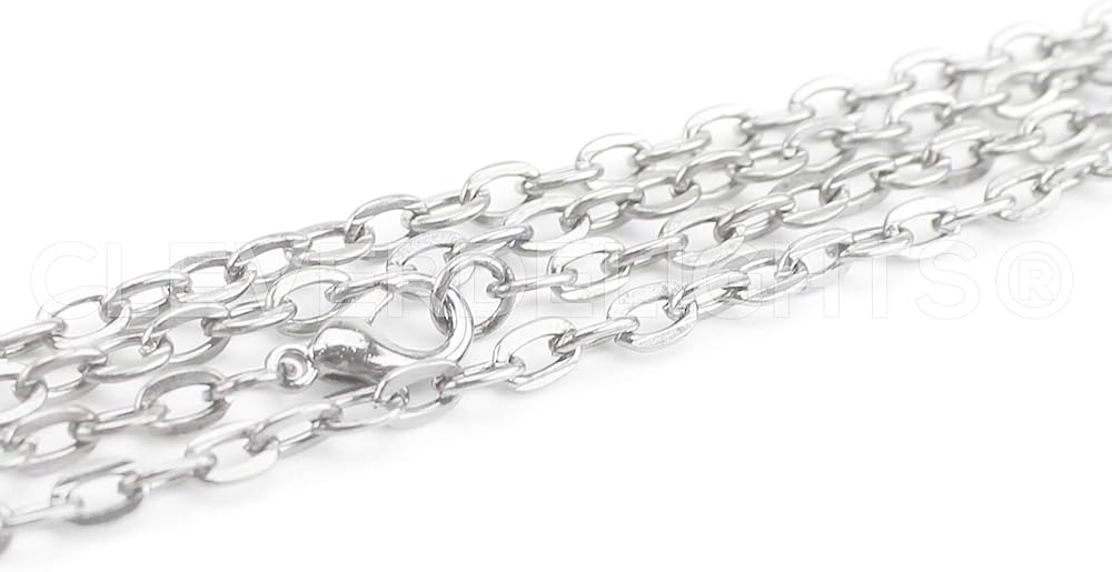 CleverDelights 3x4mm cable chain necklaces. 24 inch length. 20 pack. Perfect for making beautiful craft necklaces. Cable chain has flat oval links giving these chains a simple and timeless style. Each ready-to-wear 24" necklace comes with a lobster clasp and jump ring preattached, no assembly required. Don't forget the matching CleverDelights pendant trays and glass cabochons (sold separately) for superb color-matched custom necklaces and jewelry. Other cable chain necklace sizes (2x3mm, 4x6mm, 5x7mm) are also available. Visit our store to see our full selection of necklace styles, sizes, and colors. Thanks for shopping with us!
