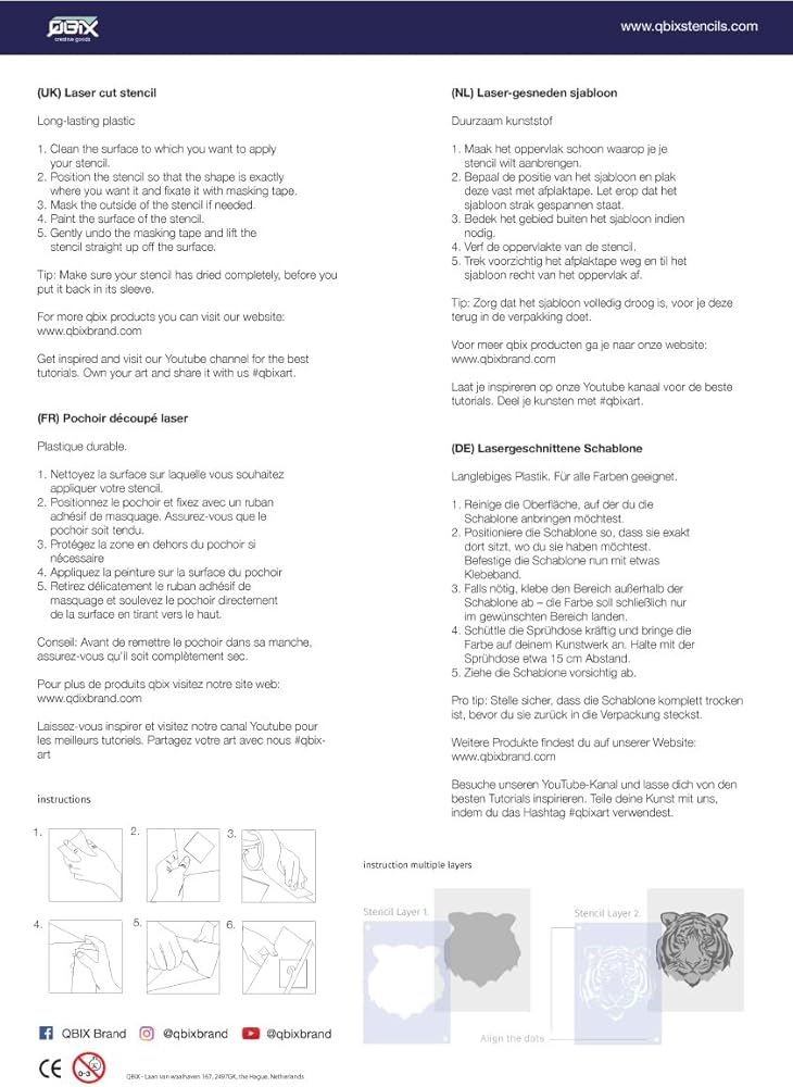 الاستخدامات: استنسلات QBIX مثالية للجدران والنوافذ والأعمال اليدوية والأثاث والأقمشة والنقوش الزجاجية وطلاء الطباشير والحرف اليدوية والخبز واللافتات وأي شيء يلتصق به الطلاء.