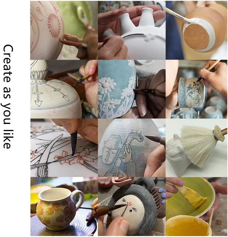 بصفتك خزافًا، لديك دائمًا مشاريع بأحجام مختلفة وأنماط تزيين مختلفة. تلبي هذه المجموعة من الفرش جميع احتياجاتك حتى تتمكن من الاستمتاع بجميع إبداعاتك