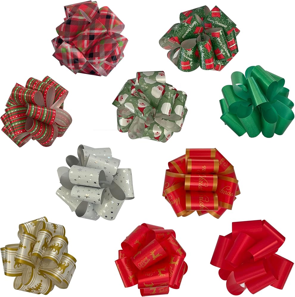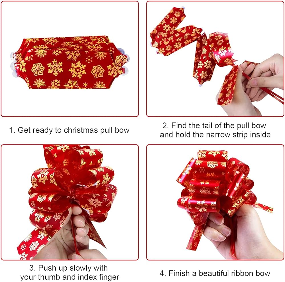 Christmas Holiday Decorative Gift Wrapping Ribbon Pull Bows include ten pull bows that form better when making up when you face them to the floor as you pull the thin ribbons upward.