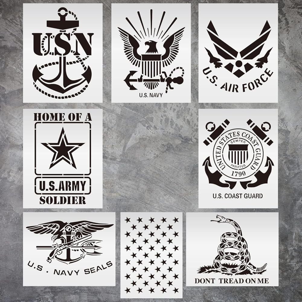 9 حزمة 6.4x7 بوصة اللوحات الأمريكية العلم الاستنسل سلسلة عسكرية قالب الاستنسل مشاة البحرية/الجيش/القوات الجوية للخشب
