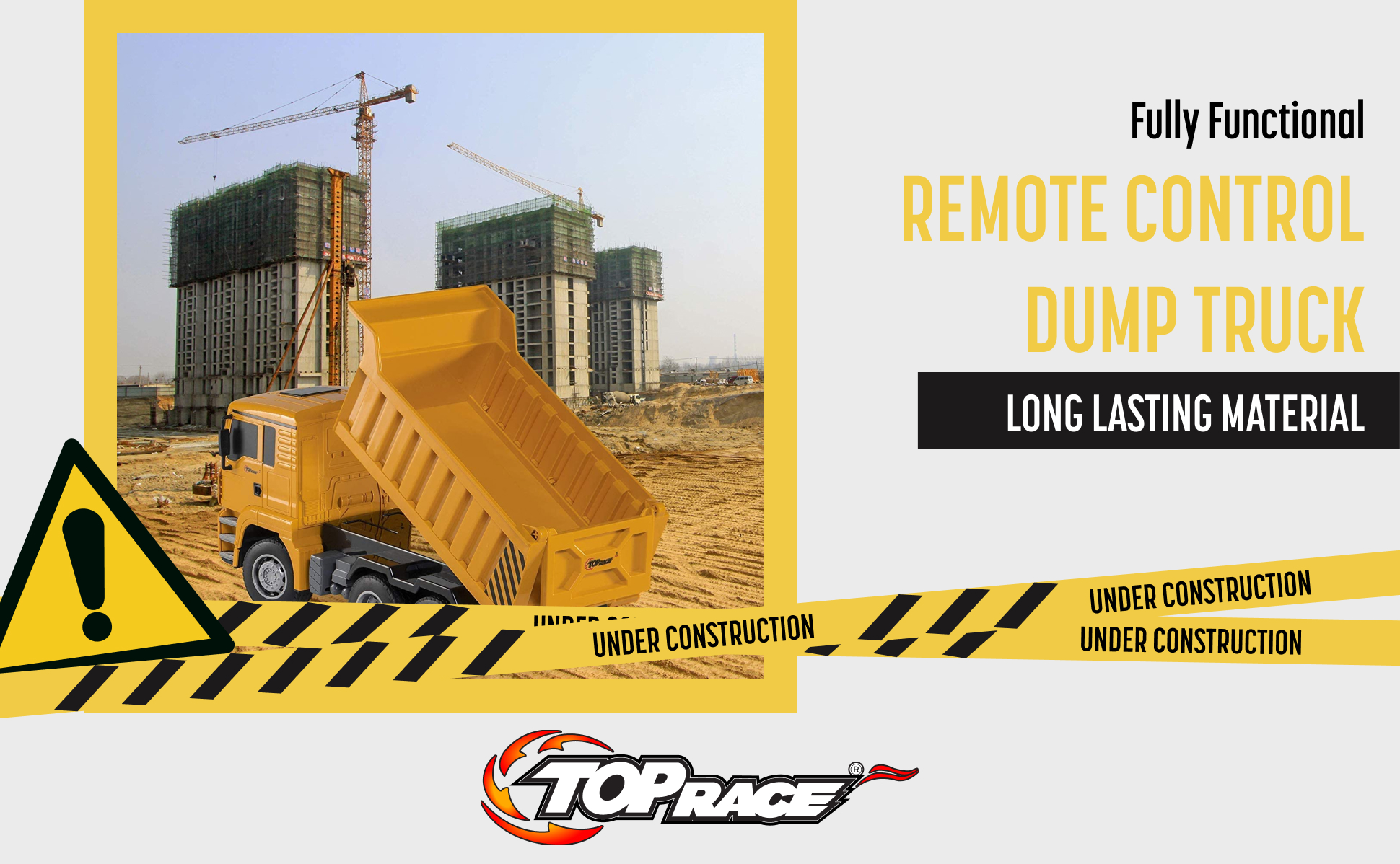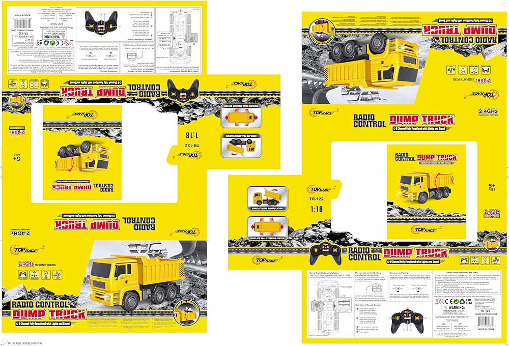 مفصلة للغاية: تمامًا مثل الشيء الحقيقي، للاستخدام في الأماكن المغلقة أو الهواء الطلق، وصندوق الرمل وما إلى ذلك. ستعمل بشكل رائع مع ألعاب البناء الأخرى من توب ريس مثل الحفار أو اللودر. جهاز تحكم عن بعد 2.4 جيجا هرتز، لن يتداخل التحكم بالراديو مع الآخرين.