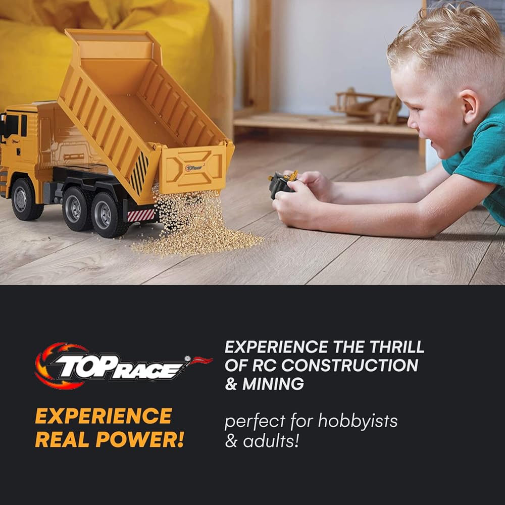 لعبة شاحنة قلابة تعمل بالتحكم عن بعد من توب ريس، ألعاب هدايا شاحنة قلابة RC لعمر 8،9،10،11 سنة وما فوق، 6 قنوات ألعاب بناء شاحنات قلابة للتحكم عن بعد للأولاد TR-122