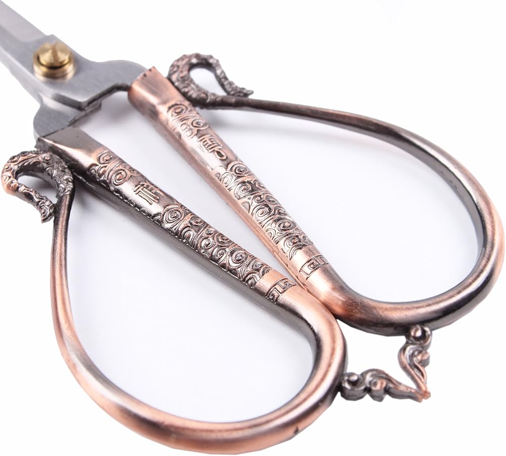 BIHRTC 6.3 بوصة مقص من الفولاذ المقاوم للصدأ ذو تصميم عتيق مقص السحب الميمون أدوات الخياطة اليدوية للتطريز والتطريز والخياطة والحرف اليدوية والأعمال الفنية والاستخدام اليومي (النحاس)
