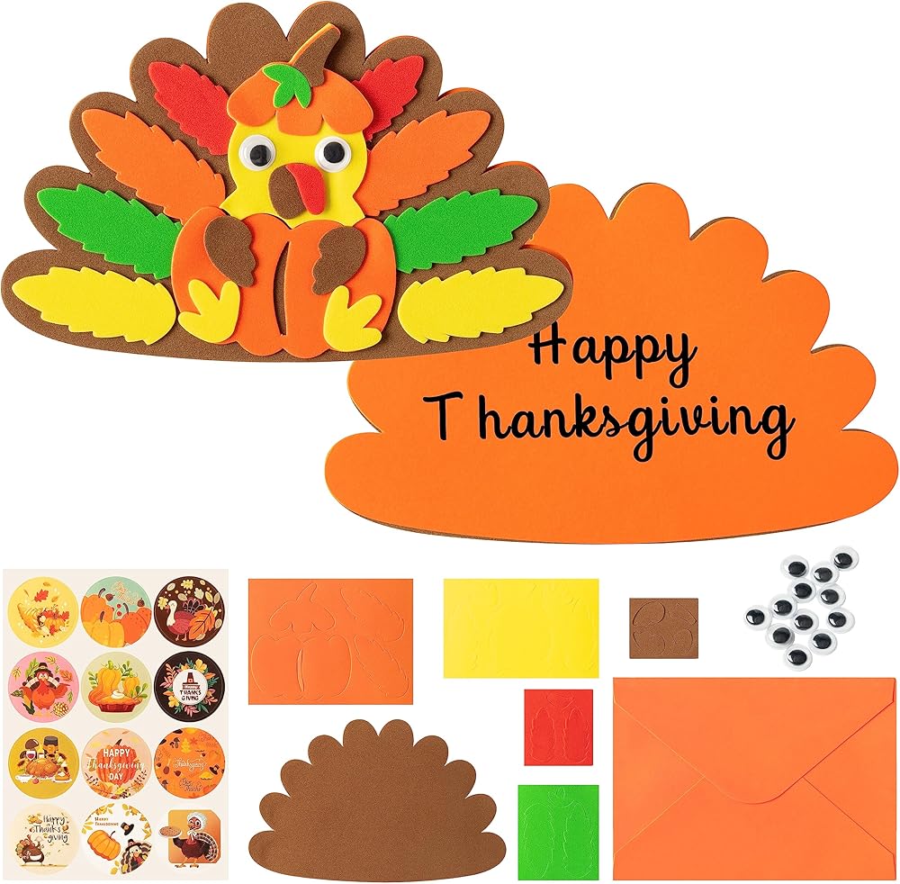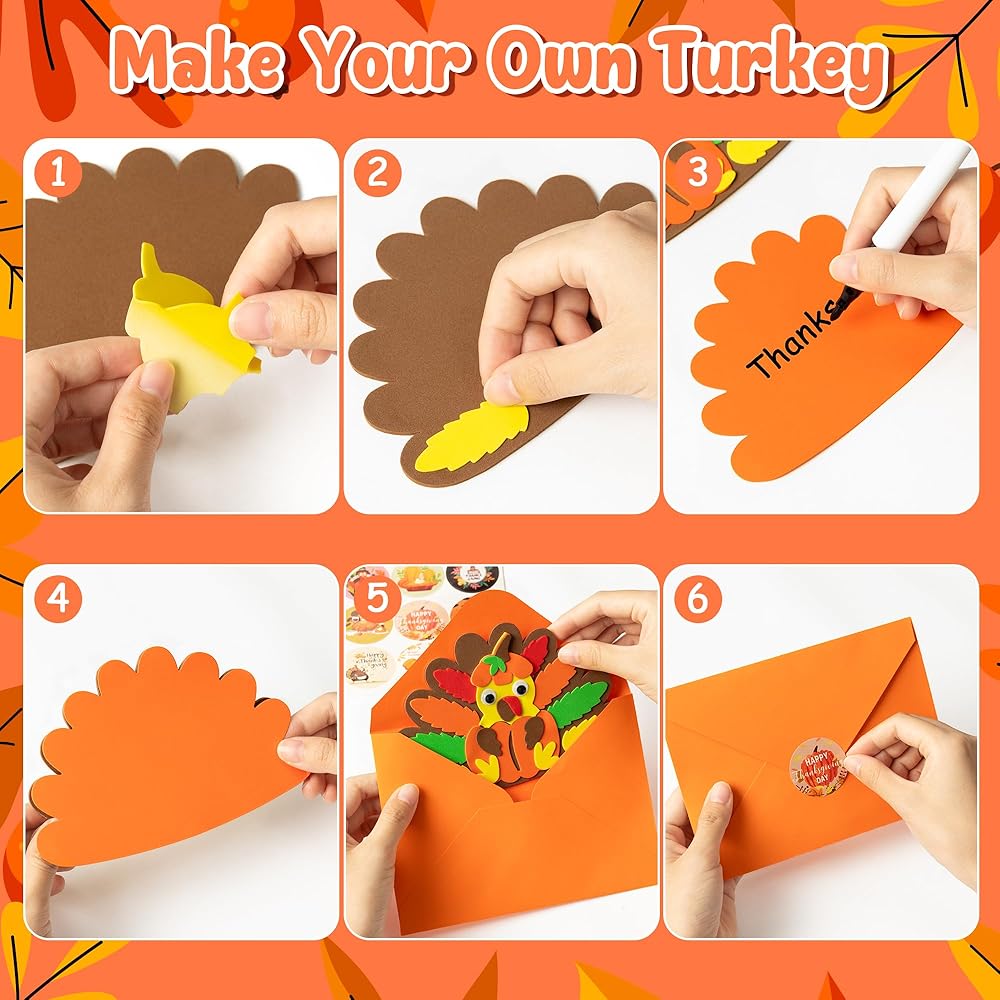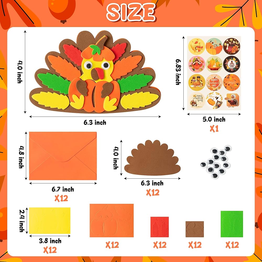 B1ykin عيد الشكر بطاقات الشكر مجموعة الحرف الرغوية للأطفال، DIY الخريف تركيا بطاقة الشكر مع المغلفات، 12 مجموعات DIY بطاقات المعايدة الخريف الحرف اليدوية للمدرسة الحزب الفصول الدراسية الأنشطة المنزلية اللوازم