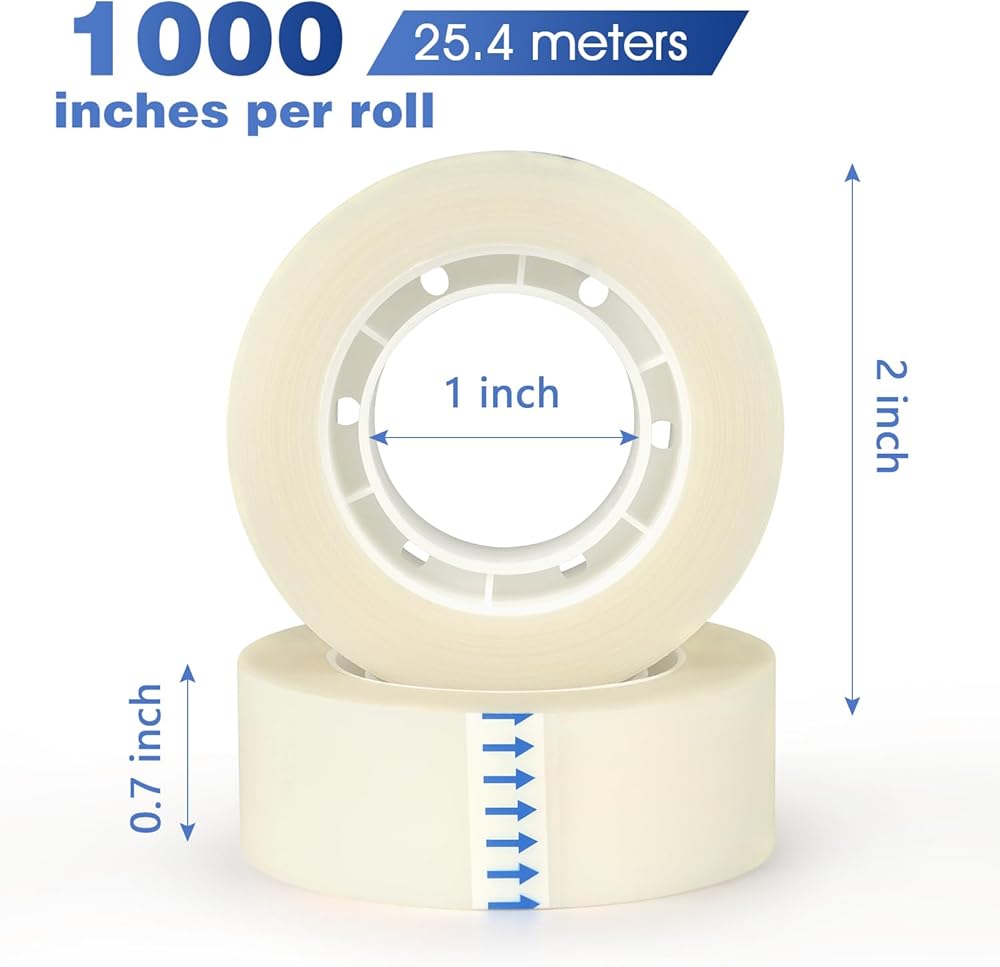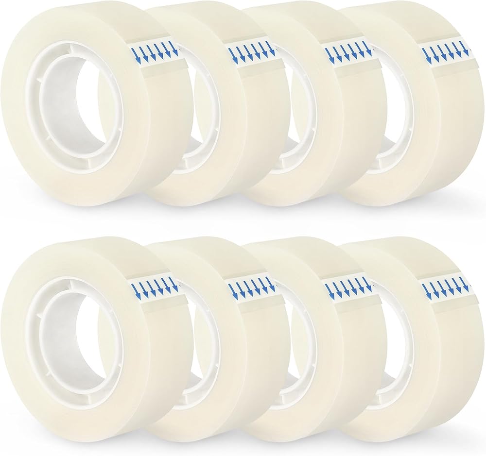 8 لفات من شريط NNY الشفاف لإعادة تعبئة الشريط غير المرئي وشريط شفاف لكل لفة مقاس 3/4 × 1000 بوصة للمكتب والمنزل والمدرسة
