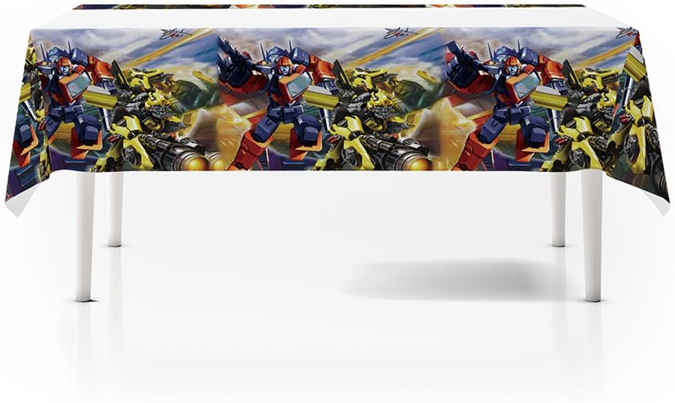MZHICH الكرتون روبوت لوازم الحفلات حزمة مفارش المائدة البلاستيكية أغطية الطاولة للأطفال الكرتون روبوت موضوع زينة حفلة عيد ميلاد 70x42.9 بوصة 2 قطعة