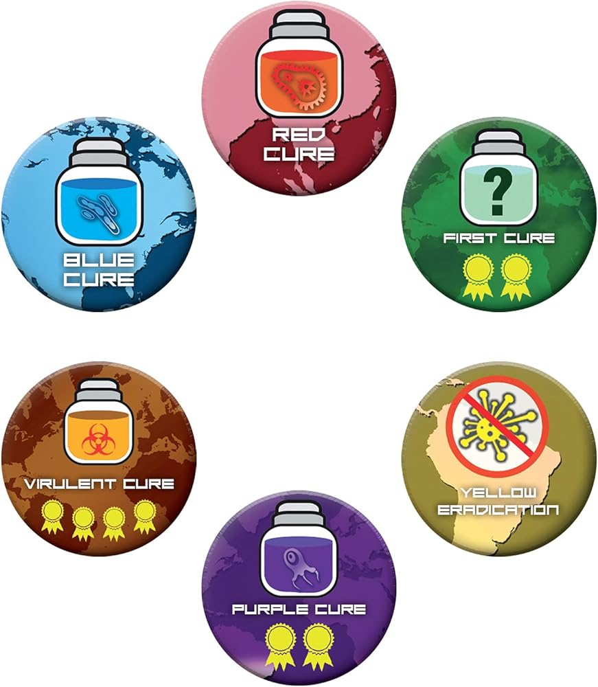 4 new Role cards, with matching pawns 3 new Event cards 1 Lab board 5 cure vials 14 Sequence cards 2 revised role cards with Lab abilities 5 Lab actions reference cards 1 CDC card 3 wooden team research stations 14 awards 8 Goal cards 10 Bonus cards 2 Virulent Strain Epidemic cards 12 purple disease cubes 2 Mutation Worldwide panic cards