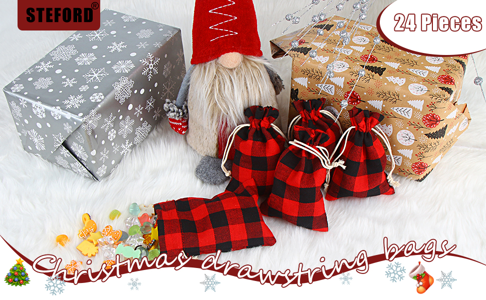 • Package Contains:You will receive 24 pieces Christmas drawstring bags in buffalo plaid design,sufficient quantity meet all your needs on Christmas and other occasions.(Recommend buy with multiple packs,satisfy your diverse demands and replacements!)