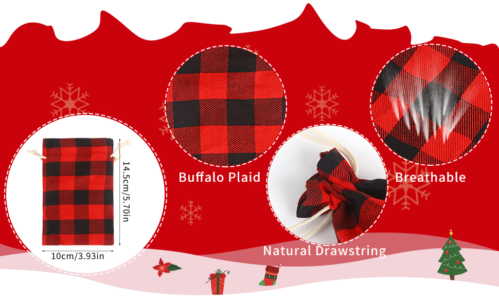 • Multiple purposes:The plaid drawstring bags can be applied as party favors bags or gift bags for Christmas,Wedding,Birthday Parties,Baby Showers,Anniversaries,Celebrations and ect.Your guests or friends will be happy to receive such a wonderful gift,and it is also suitable for daily use or a small storage bag for traveling