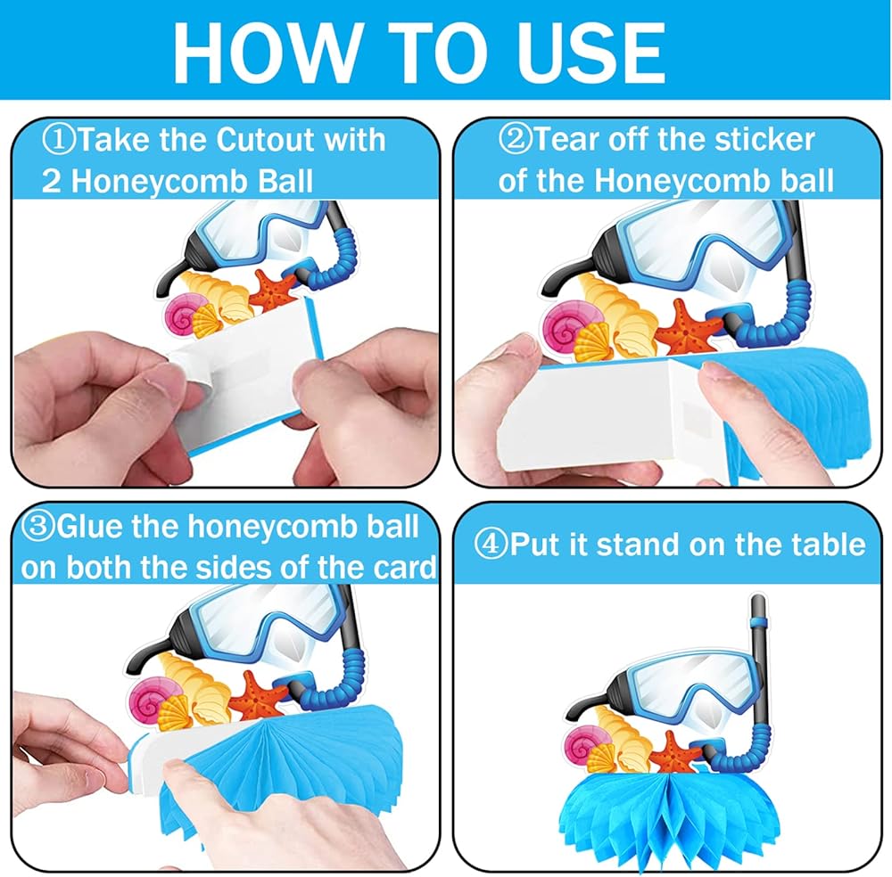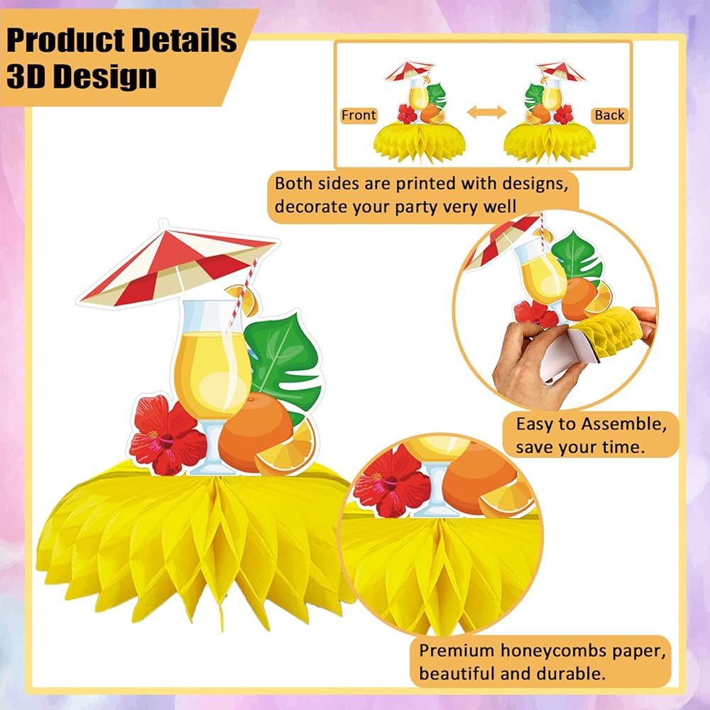 Premium Material - These summer table honeycomb centerpieces are made of sturdy card stock with surface lamination and delicate printing. The 3D design makes these summer themed honeycomb centerpieces stand firmly on the table and will be the perfect decoration for your summer beach party.