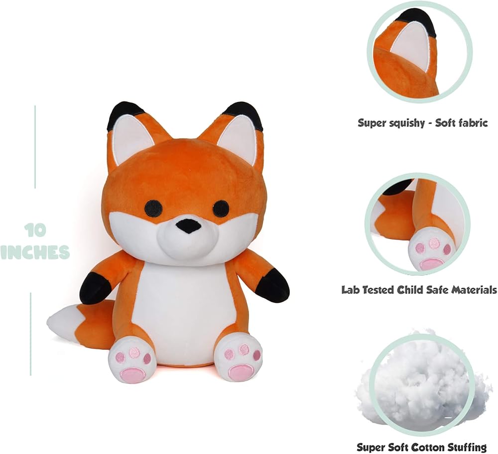 SUPER-SQUISHY PLUSH ORANGE RED FOX - The adorable face and squeezable body of our orange red fox are made from premium cloth and filler. With an ultra-soft and velvety coat, you won't be able to stop hugging it!