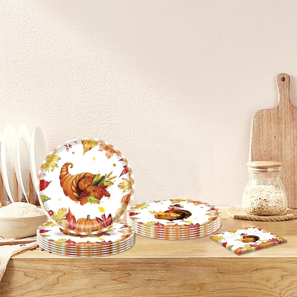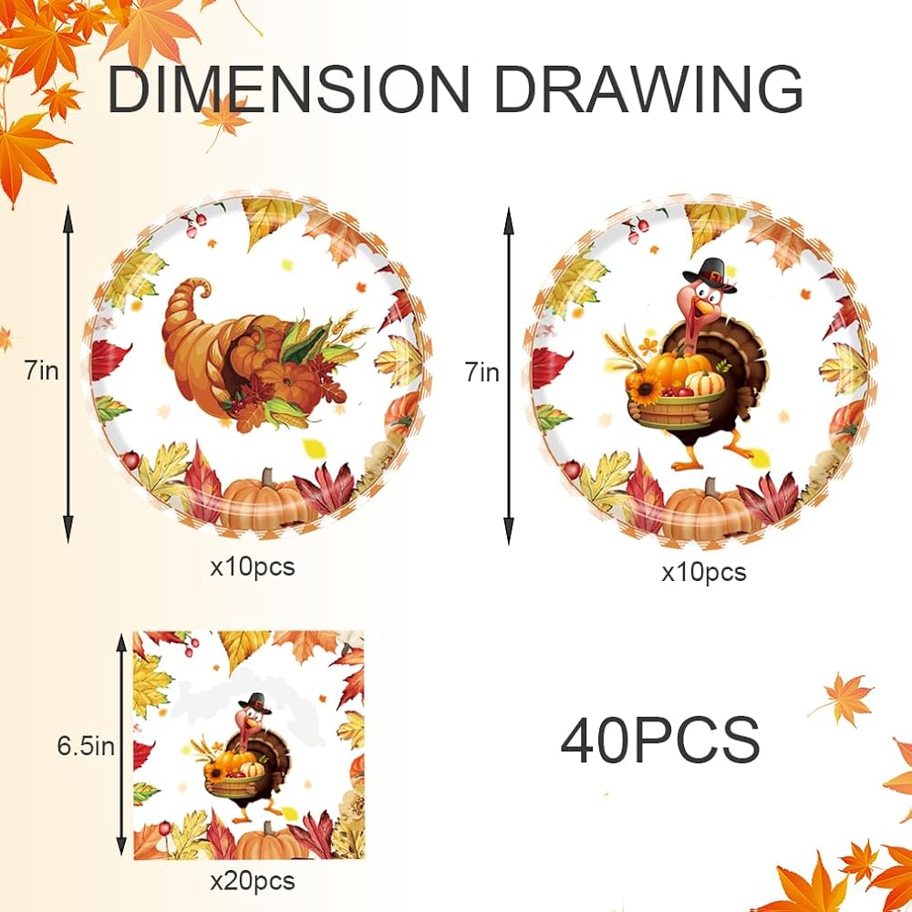 Package includes: 20 pcs Fall Leaves plate and 20pcs Fall Leaves paper towel for the Thanksgiving Day party