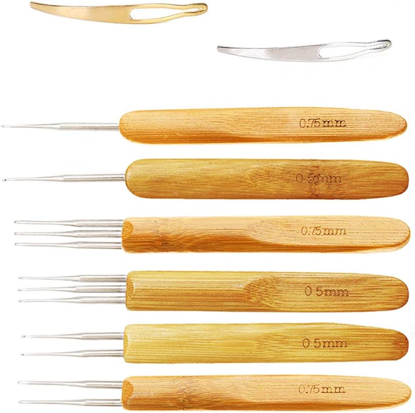 المقاسات والكمية: 6 قطع كروشيه من دريدلوك مع خطافات مختلفة (خطاف واحد، خطافين، 3خطافات، 0.5 مم و0.75 مم)، 2 قطعة أداة متشابكة للشعر.