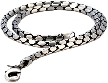 A high quality solid brass chain (not steel or zinc like cheaper chains) plated with pure silver, oxidised, hand finished to create a matte look, and then coated with a premium protective layer to extend the wear life.