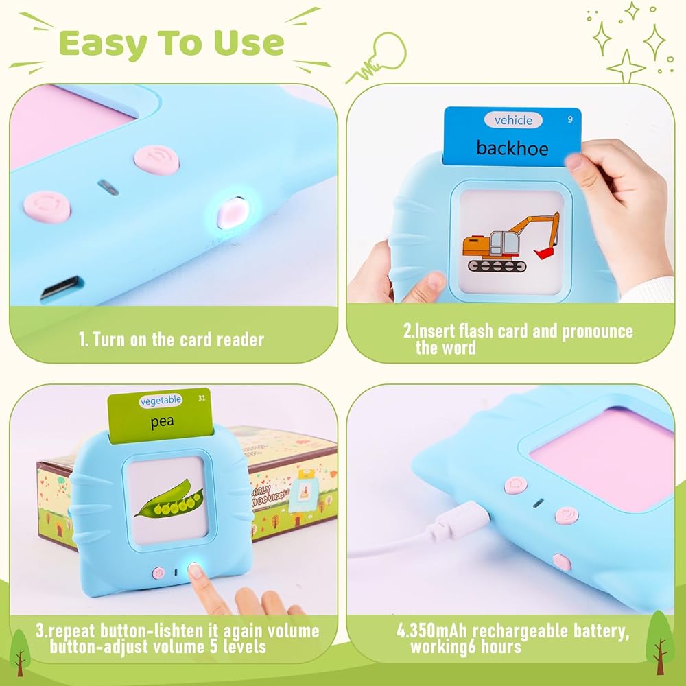 ✨【سهلة الاستخدام】تحتوي ألعاب تطوير الكلام للأطفال الصغار هذه على بطارية مدمجة قابلة لإعادة الشحن تدوم لمدة 4.5 ساعات، مما يضمن حصول طفلك على الكثير من الوقت للتعلم واللعب، مع تصميم مدمج يجعل من السهل حملها والتعلم في أي مكان. إنه مفيد بشكل خاص للأطفال المصابين بالتوحد لتطوير القدرة على الكلام.