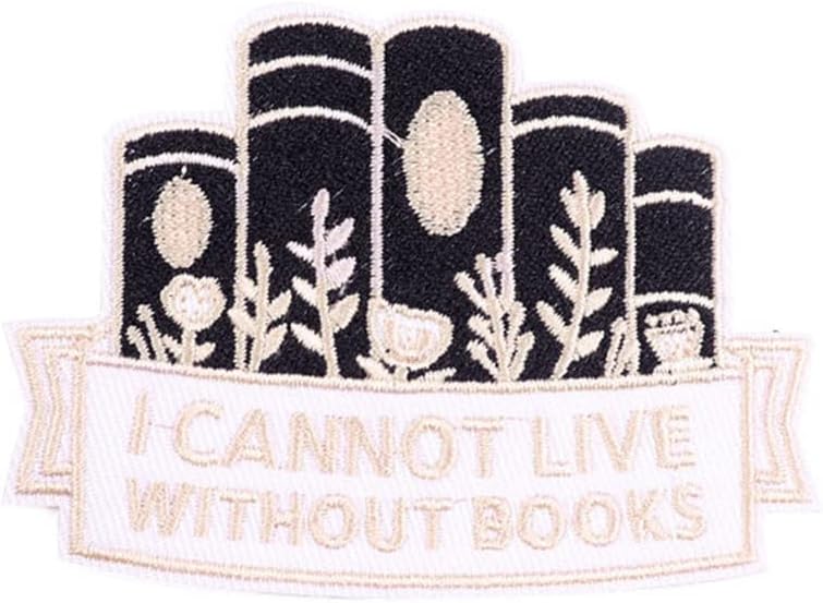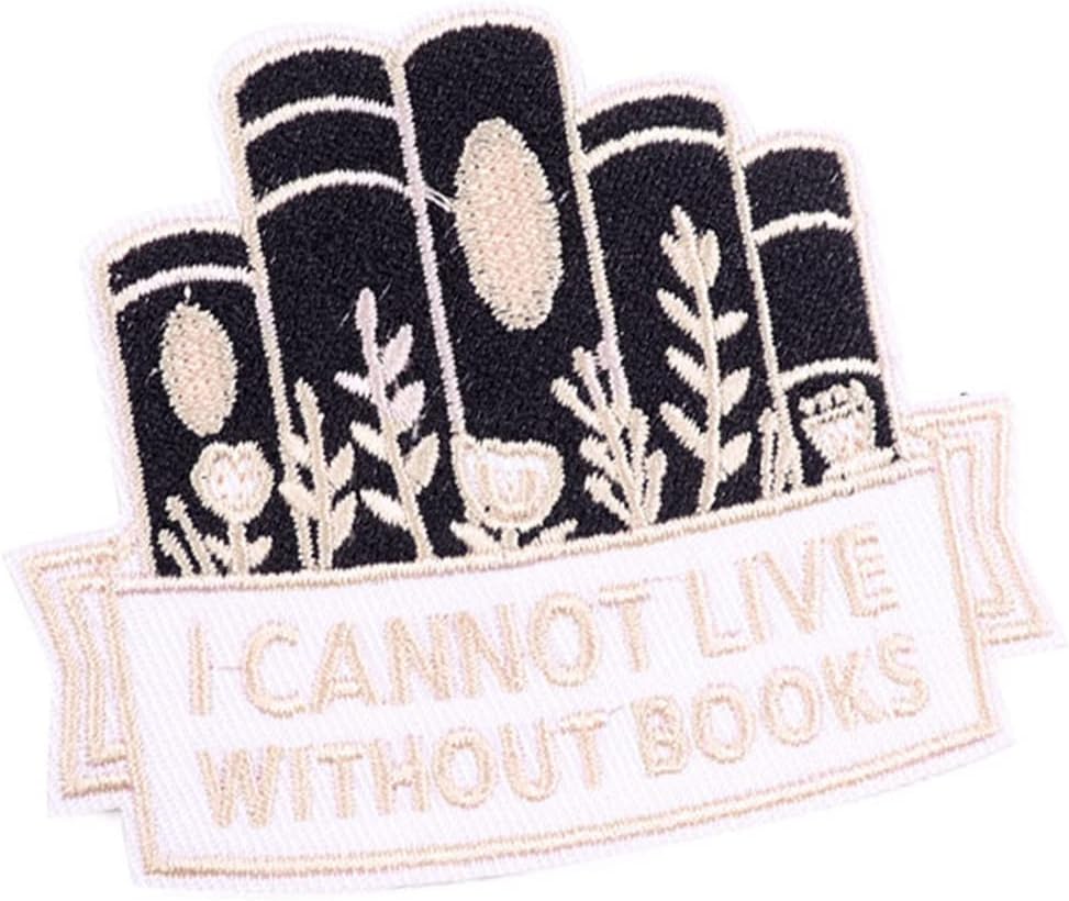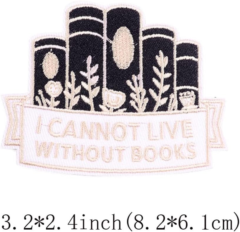 I Cannot Live Without Books Sew on Patch Embroidery Fashion Cartoon iron on Patch Books Lovers Hard Badge Accessories for Jackets Jeans Backpack Cloth Lapel Bag Hat Gift for Readers Book Lovers Students
