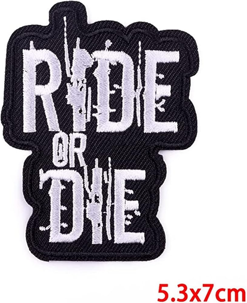 Punk Skull Ride or die Embroidered Cloth Patch Hip-hop Culture Patch Ride or die Letter Embroidered Patch Iron On or Sew On Patches DIY Fashion Jacket Embroidered Biker Patch Jeans Clothing Bags Hats
