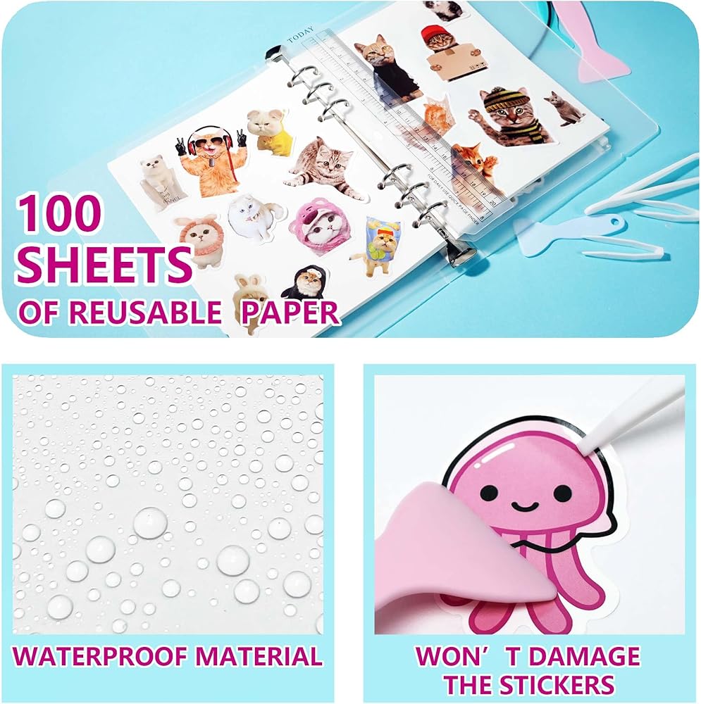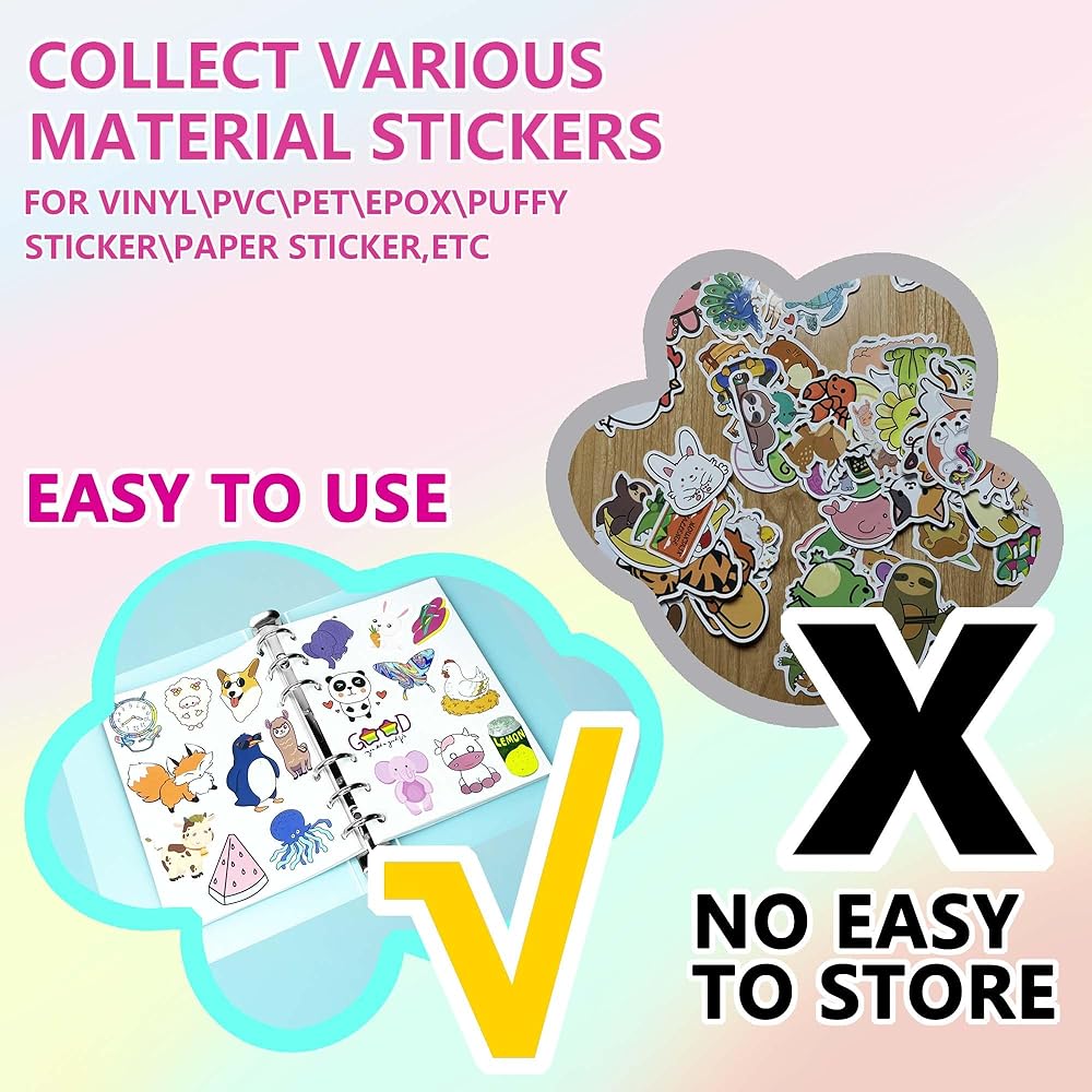 [غطاء سميك للغاية] مع غلاف سميك للغاية، يضمن ألبوم الملصقات القابل لإعادة الاستخدام حماية أفضل لملصقاتك. يمكن استخدامه لملصقات الفينيل والملصقات المنتفخة القابلة لإعادة الاستخدام وملصقات ألبوم الصور