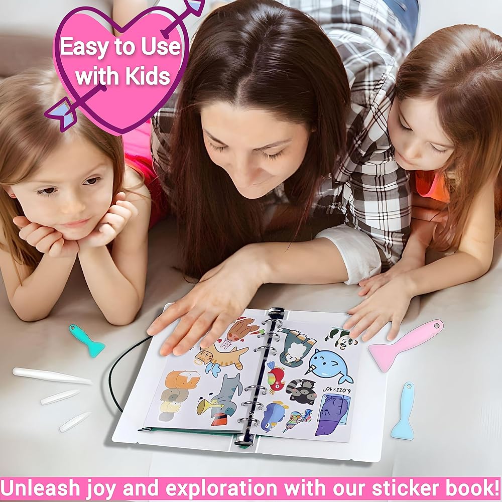 [هدية مثالية لها أو له] كتاب مجموعة ملصقات DIY للأطفال الصغار أو اسمح للفتيات بتزيين وإنشاء مشاهد باستخدام ملصقات قابلة لإعادة الاستخدام على كتاب الملصقات الفارغ، وتعزيز مهاراتهم العملية