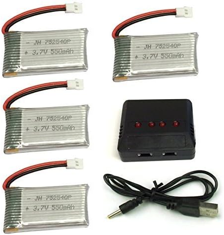 - بطارية ليبو 3.7 فولت 550 مللي أمبير 20 سي (4 قطع) مع شاحن بطارية 4 في 1