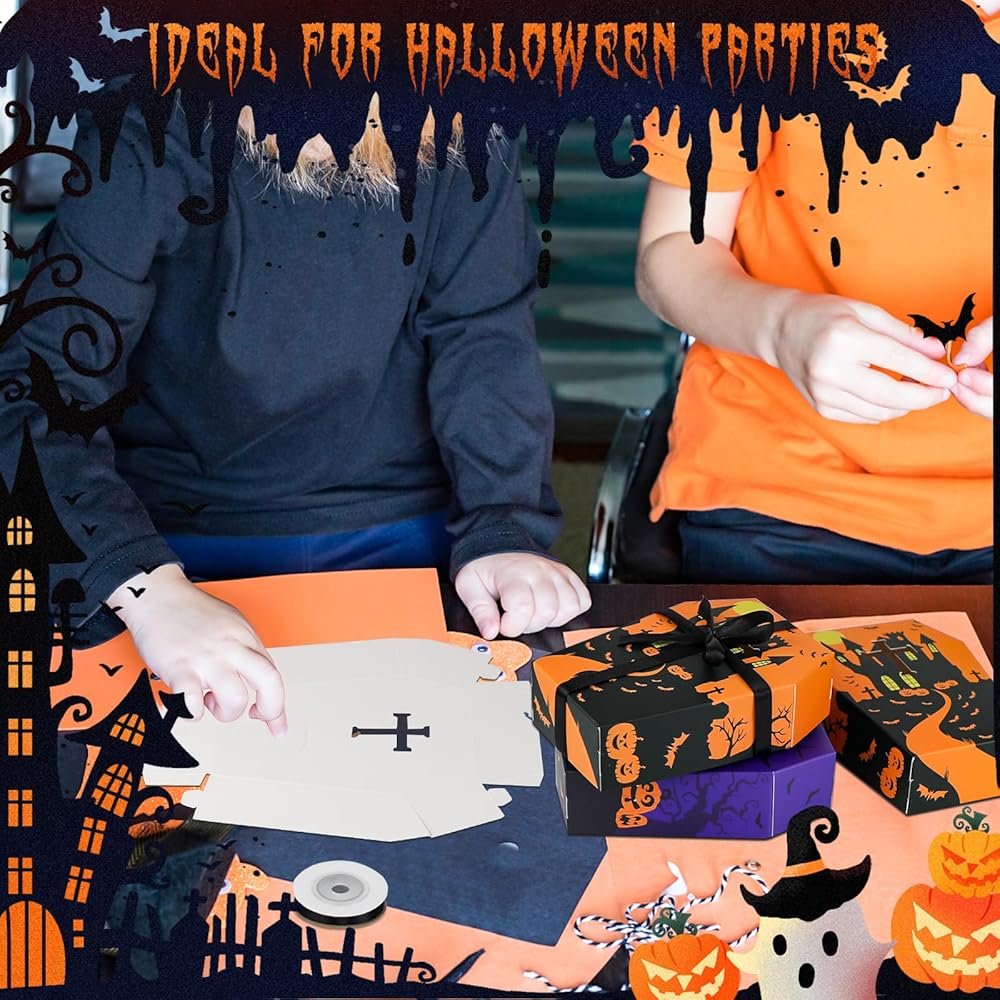 صناديق نعش الهالوين المخيفة: استمتع بروح الهالوين مع مجموعتنا المكونة من 16 صندوق تابوت. كل صندوق له نمط متقاطع ومثالي لحمل الحلوى أو الهدايا أو الكنوز الصغيرة.