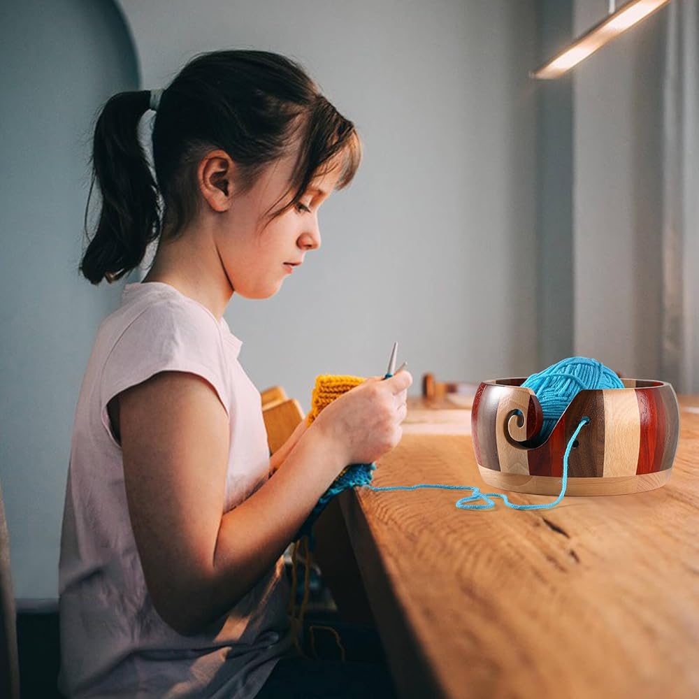 Convenient and Perfect Size - 16cm*15cm*8cm/6.3in*5.9in*3.1in large wooden yarn bowl can comfortably fit a 3.5oz ball of yarn. You don't need to worry about the ball of yarn rolling around and falling apart. The ball of yarn will spin in the bowl when you knit.
