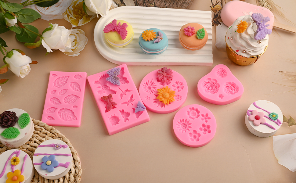 • تشمل العبوة: مجموعة من 5 قوالب سيليكون فوندان ، قطعتان من قوالب الزهور ديزي ، قطعة واحدة من قوالب الزهور ، 1 قطعة قالب ورقة ، 1 قطعة قوالب الفراشة.
