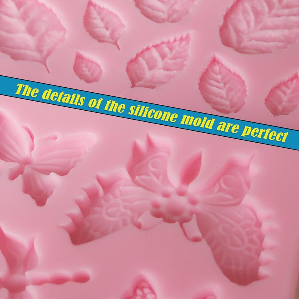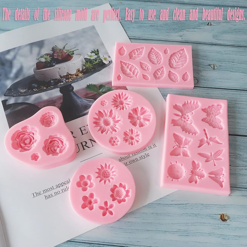 مجموعة قوالب سيليكون فوندانت 5 عبوات ، فراشات صغيرة / زهرة / أوراق / قوالب سيليكون وردي لتزيين الكعك ، صنع الشوكولاتة ، طين البوليمر ، صب الإيبوكسي