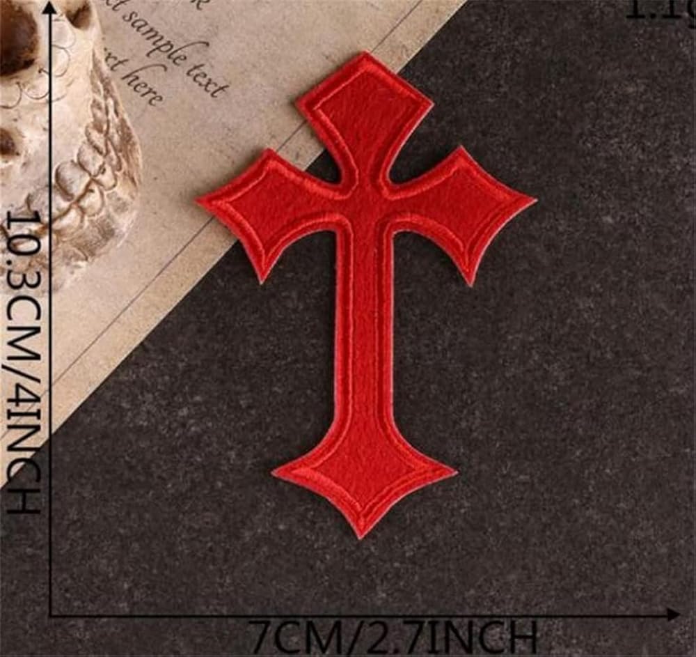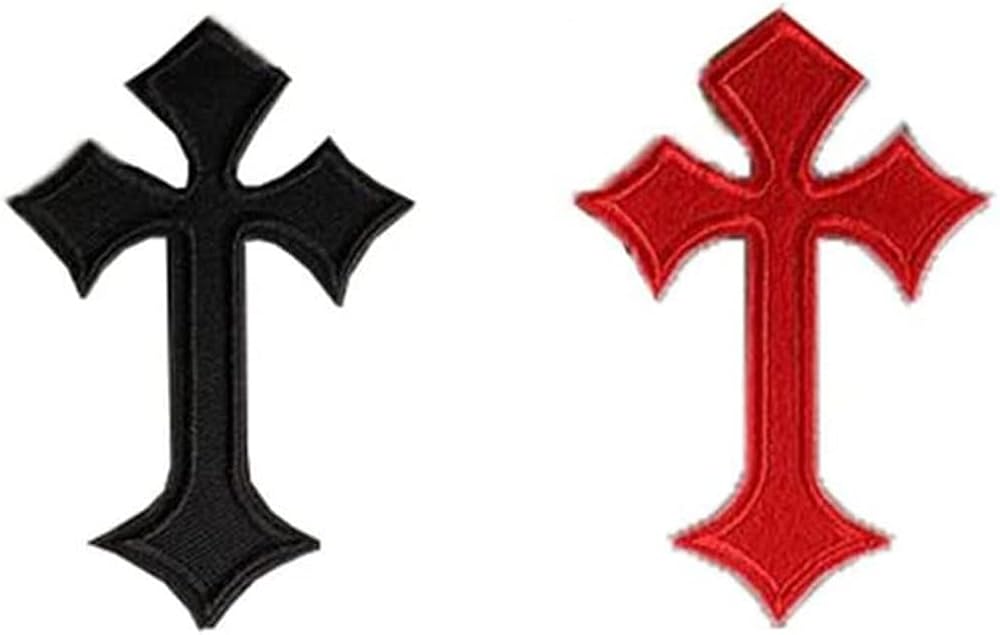 Black Red Cross Embroidery Patches Cross Sew Iron On Embroidered Gothic Badges Decoration Embroidered Iron on Patches Sewing DIY Badge Patches Clothing Backpacks Jeans T-Shirt Caps Accessory for Decorate