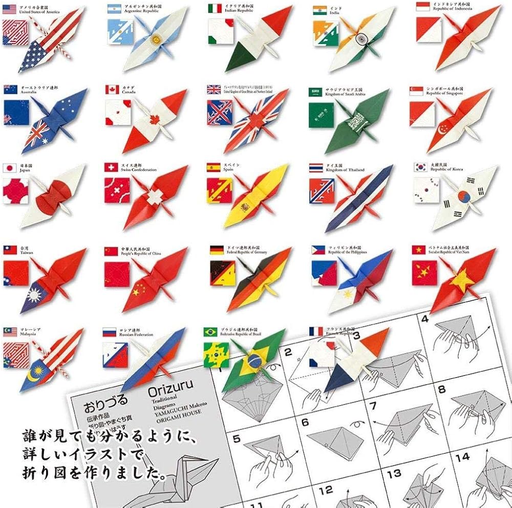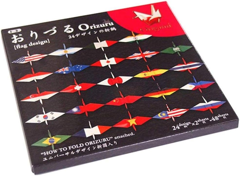 - تويو اوريغامي للرافعة، اوريغامي مع العلم الوطني مطبوع 15 سم × 15 سم، 24 نمط، 2 ورقة لكل منها