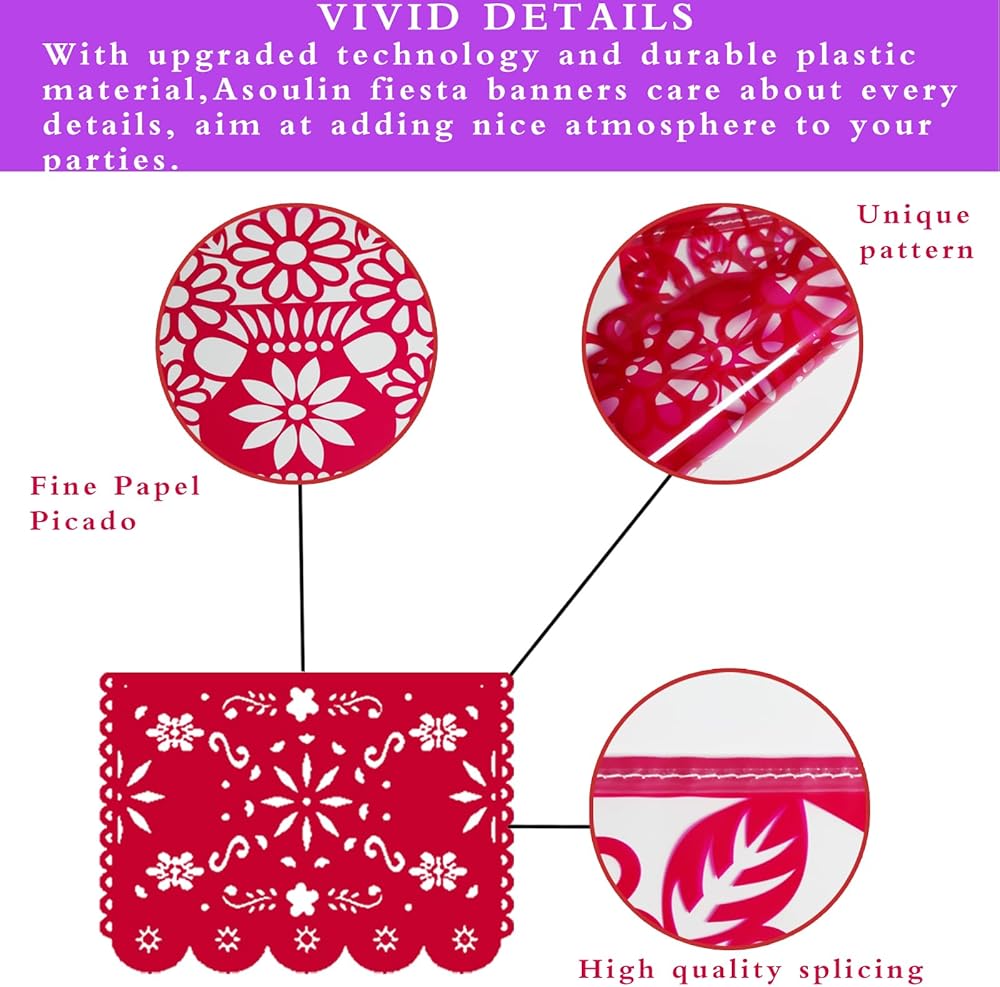• PREMIUM QUALITY: Our Papel Picado Banners are made of high-quality tissue paper, which is durable and not easy to fade or tear. The tissue paper flags are carefully designed and printed, with vivid colors and intricate patterns, adding a touch of elegance and sophistication to your party.