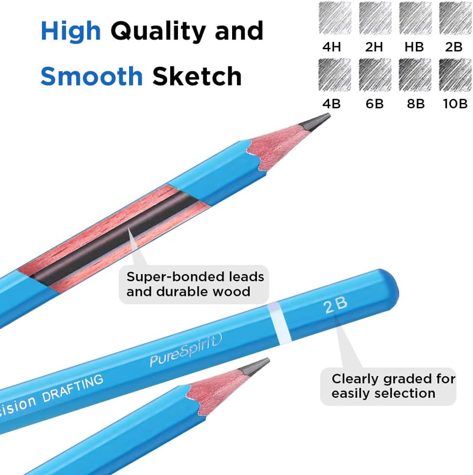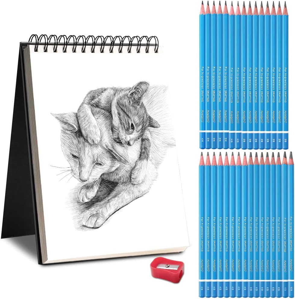 مجموعة رسم احترافية - 31 قطعة من أقلام الجرافيت للرسم الفني (4H، 2H*4، HB*2، 2B*8، 4B*8، 6B*6، 8B، 10B)، 60 ورقة (120 صفحة) دفتر رسم A4 (108 باوند/100 غرام)، قلم رصاص ميكانيكي 2B 0.7 ملم، أقلام رصاص جرافيت للتظليل والرسم للمبتدئين والمحترفين الفنانون