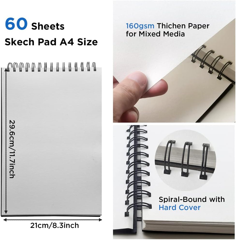 • 60 ورقة (120 صفحة) لوحة كتب رسم A4 (108 رطل/100 جم)