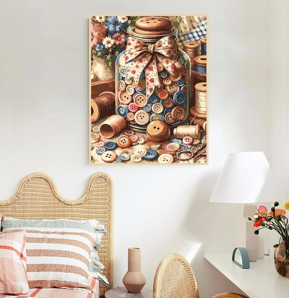 أرسم جرة الأزرار حسب أرقام الأرقام للبالغين - الطلاء الأسطوري بأرقام للمبتدئين ، الألوان المائية الأكريليك بواسطة مجموعات الأرقام ، ولوحة زهور الزيت DIY على قماش للديكور المنزلي والهدايا 16x20 بوصة