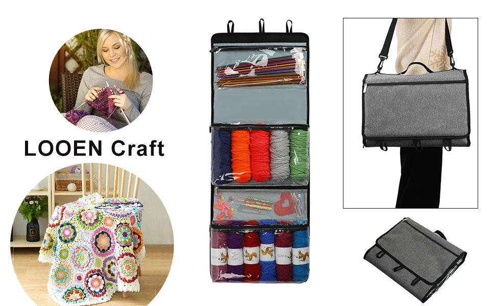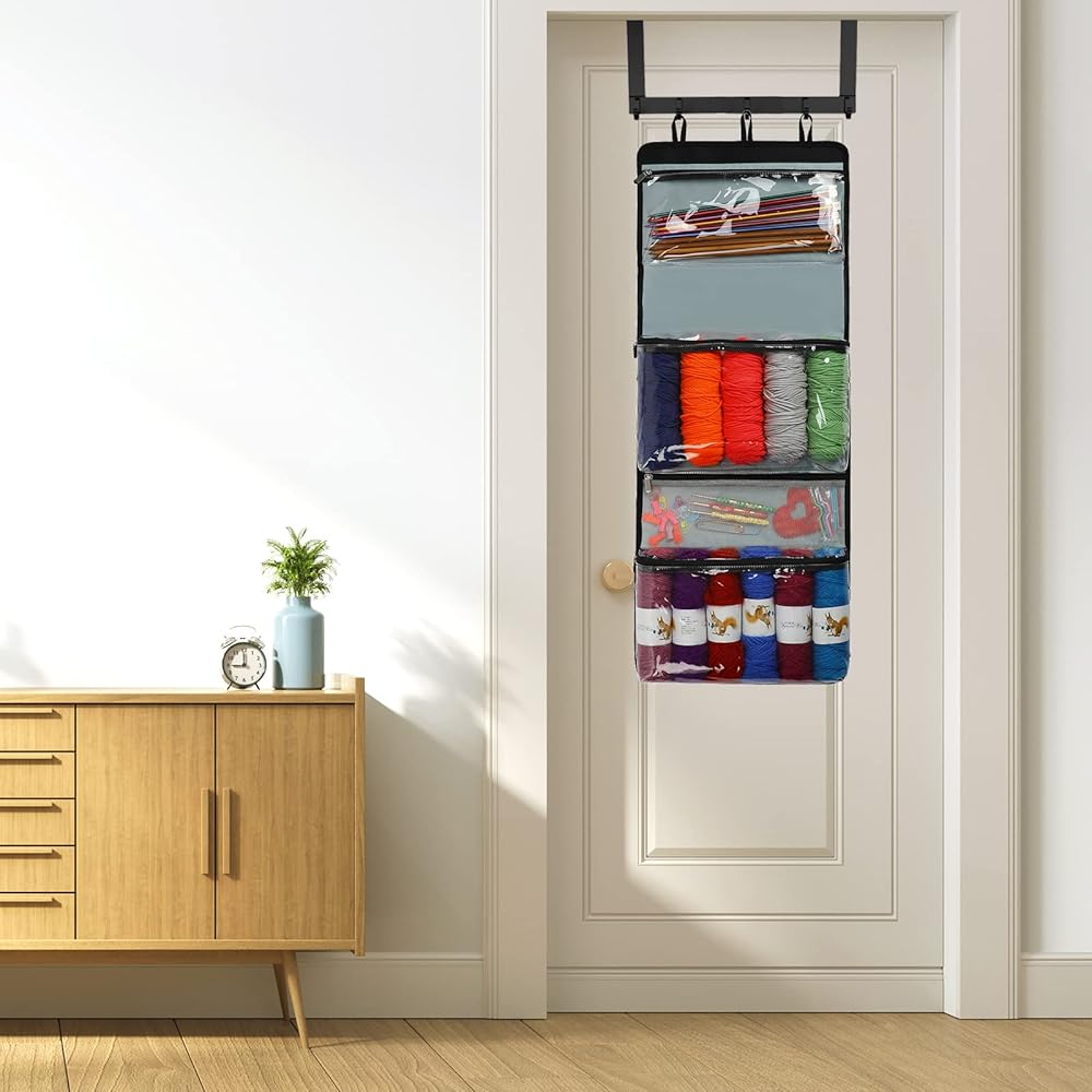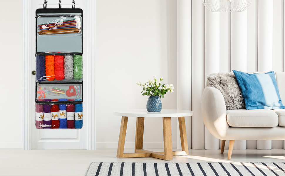 【Hanging Yarn Storage Organizer】The design allows for easy hanging over the door, clear PVC cover allows you to easily see the inside without opening the crochet bag, Protect and store unfinished project from dust or damage by pets.